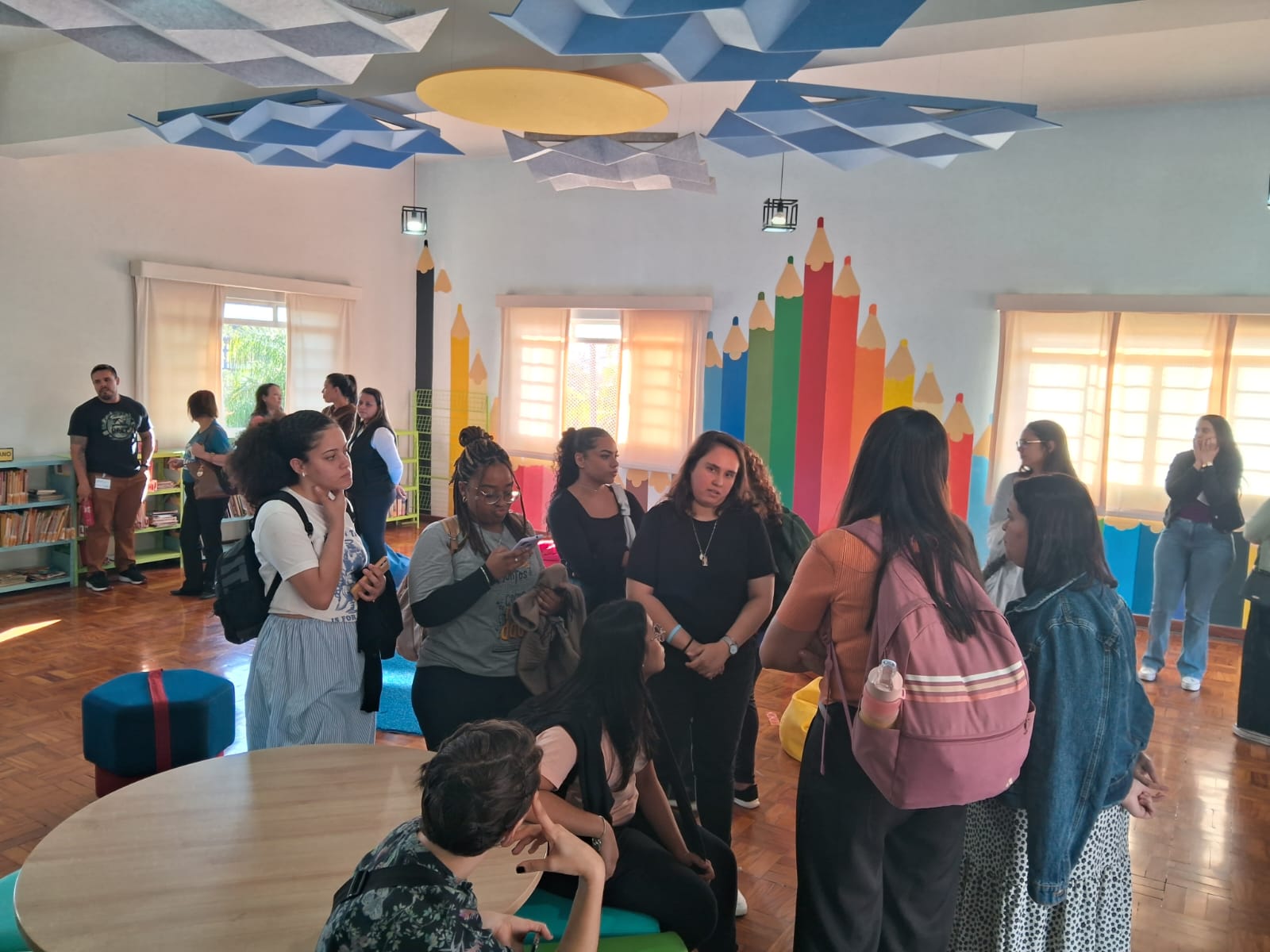 Após uma manhã repleta de aprendizado, os participantes desfrutaram de um delicioso almoço na primeira Casa Salesiana do Brasil, o Instituto Nossa Senhora do Carmo, também localizada em Guaratinguetá (SP). Em um ambiente de fraternidade, foram guiados pela Diretora Adriana Maciel em uma visita monitorada, que incluiu a “Galeria” de fotos das Irmãs Diretoras, a “Sala de Memórias”, o Espaço Maker-STEAM, o Espaço Co-Studying (aprendizagem colaborativa), a Sala de Artes e o Espaço da Educação Infantil.