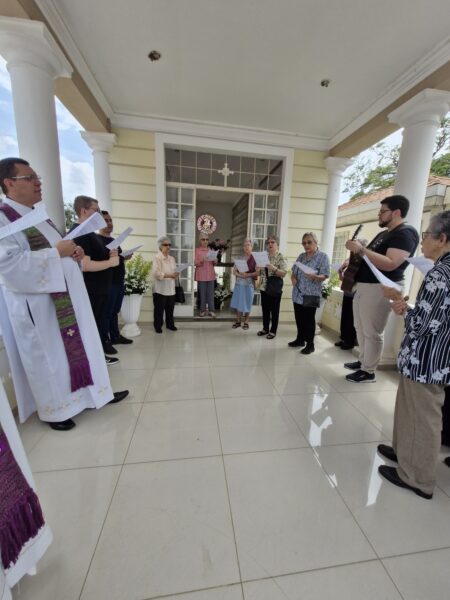 Participaram também da celebração outros membros da Congregação dos Salesianos de Dom Bosco (SDB), estudantes de Teologia, e das Filhas de Maria Auxiliadora (FMA), representando as comunidades da Casa Inspetorial, do INSA-Belém, do Recanto da Cruz Grande, de Itapevi (SP) e da Casa Santa Teresa, de Porto Alegre (RS). Também esteve presente a jovem Isadora, que está fazendo um período de discernimento vocacional com as FMA de Itapevi.