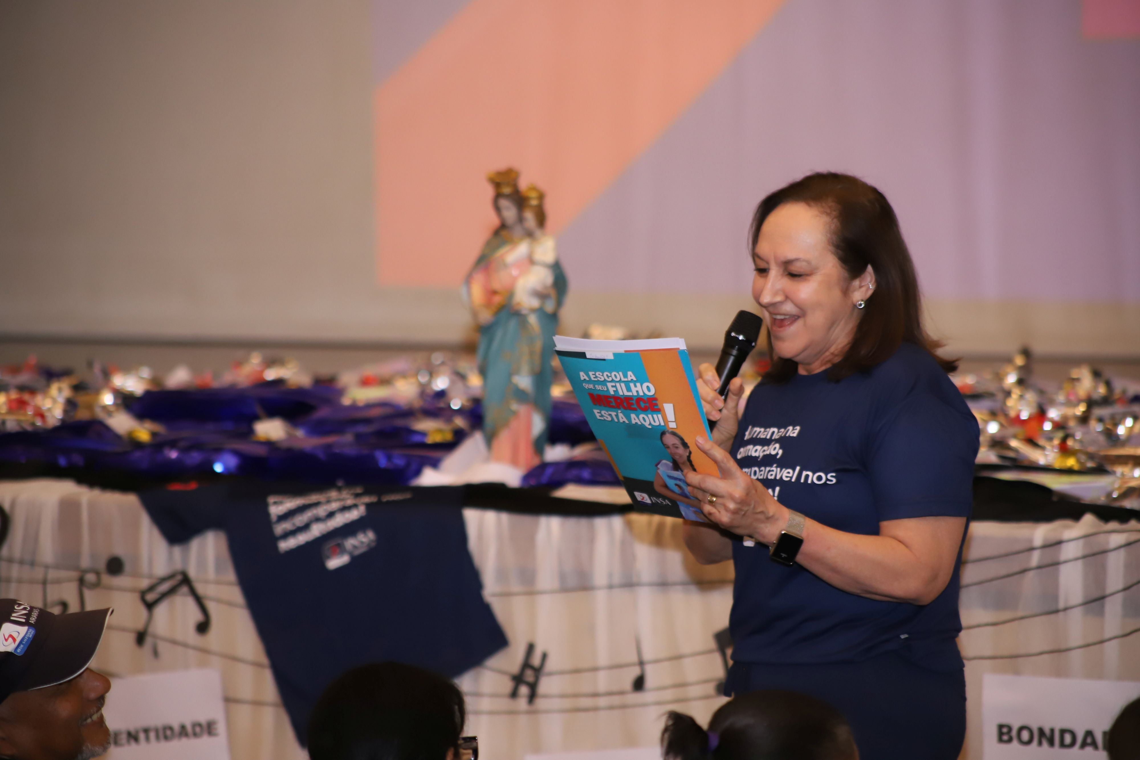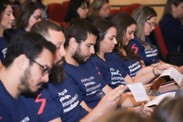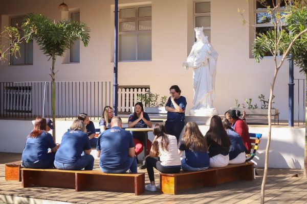 A programação teve início no Teatro da escola, com a coordenadora de pastoral, Ir. Lúcia Tironi, que trouxe uma reflexão sobre a “Carta de Roma”, escrita por Dom Bosco em 1884, retomando conteúdos já abordados pela equipe no replanejamento pedagógico de julho.