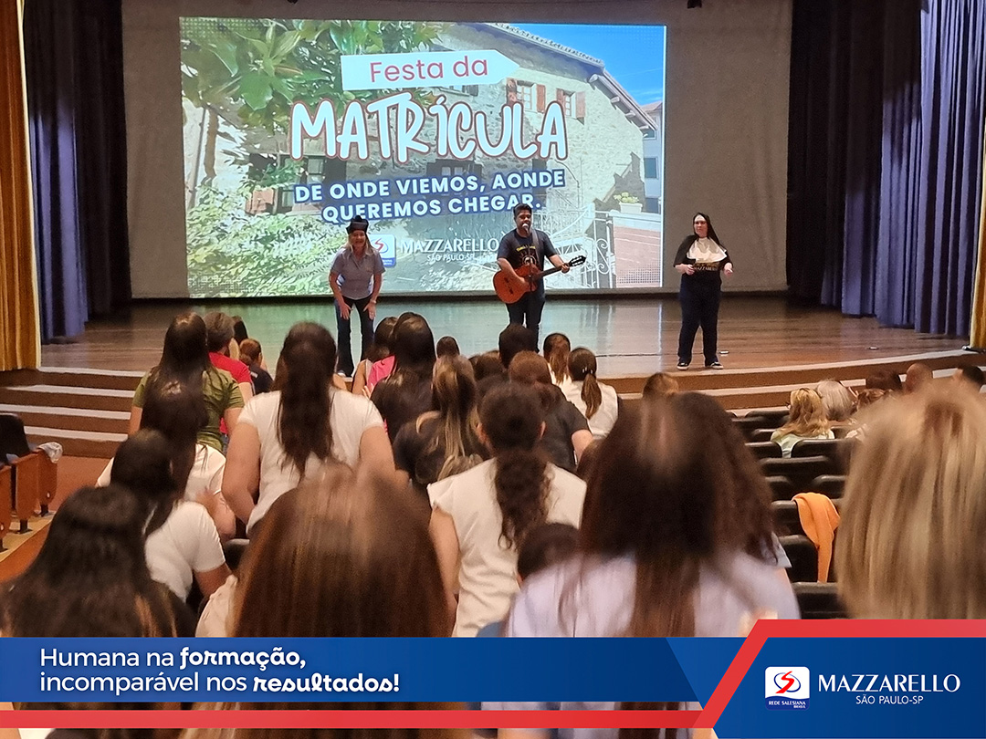 Na noite do dia 6 de outubro, o Instituto Madre Mazzarello promoveu a tradicional Festa da Matrícula, com o tema “De onde viemos, aonde queremos chegar”. O encontro reuniu todos os educadores para uma noite de partilha, espiritualidade e confraternização, em um momento de reencontro com as raízes da missão educativa salesiana.