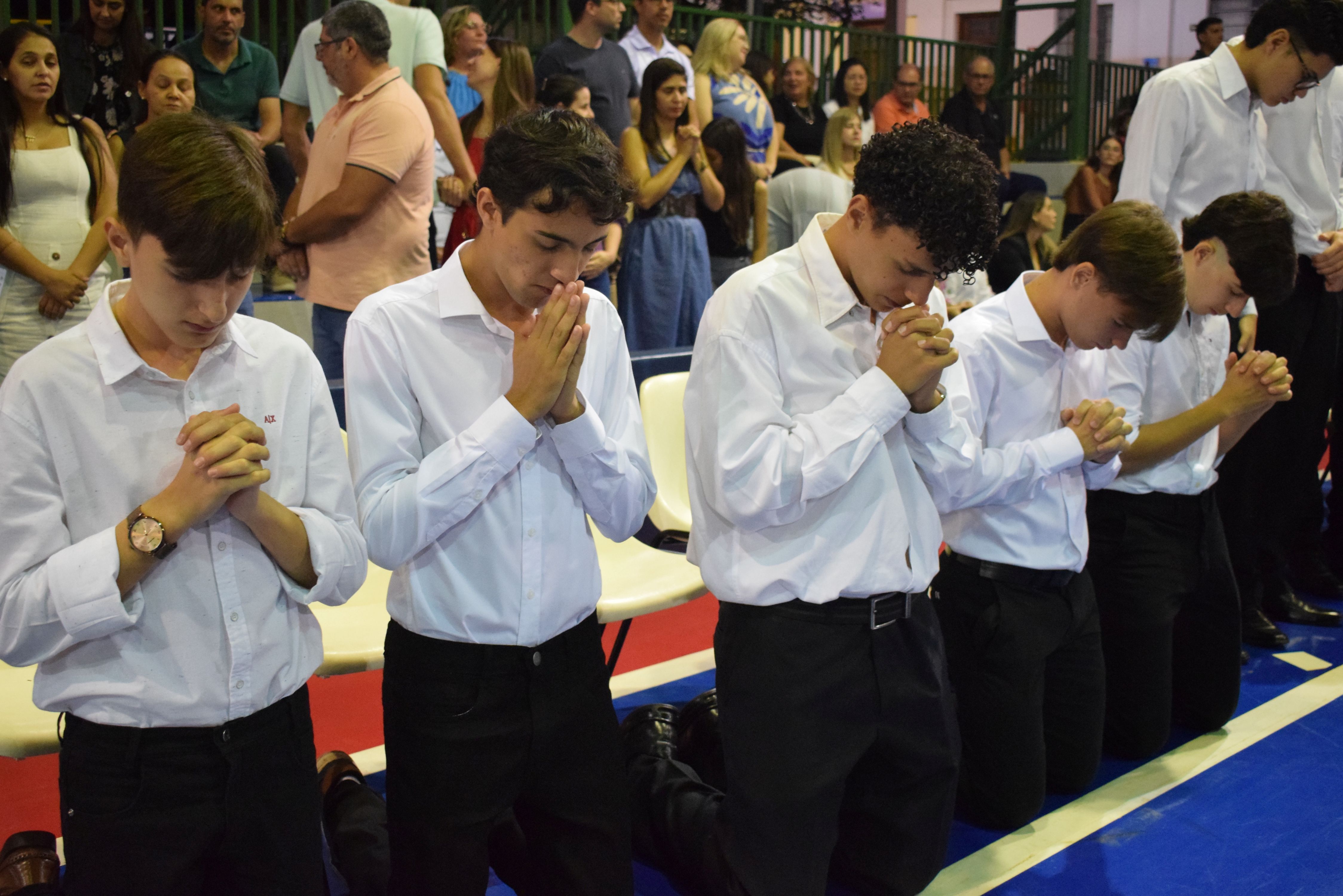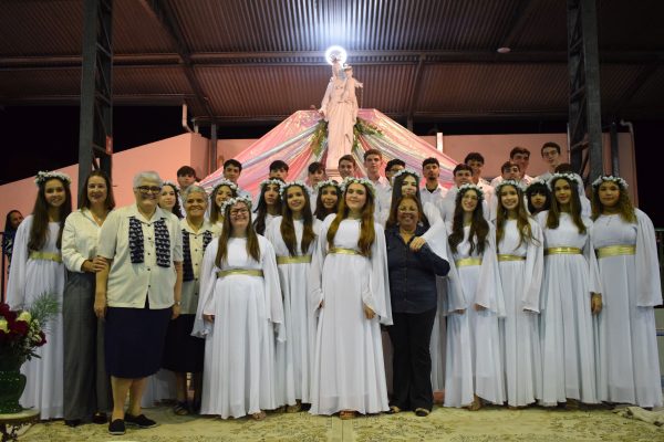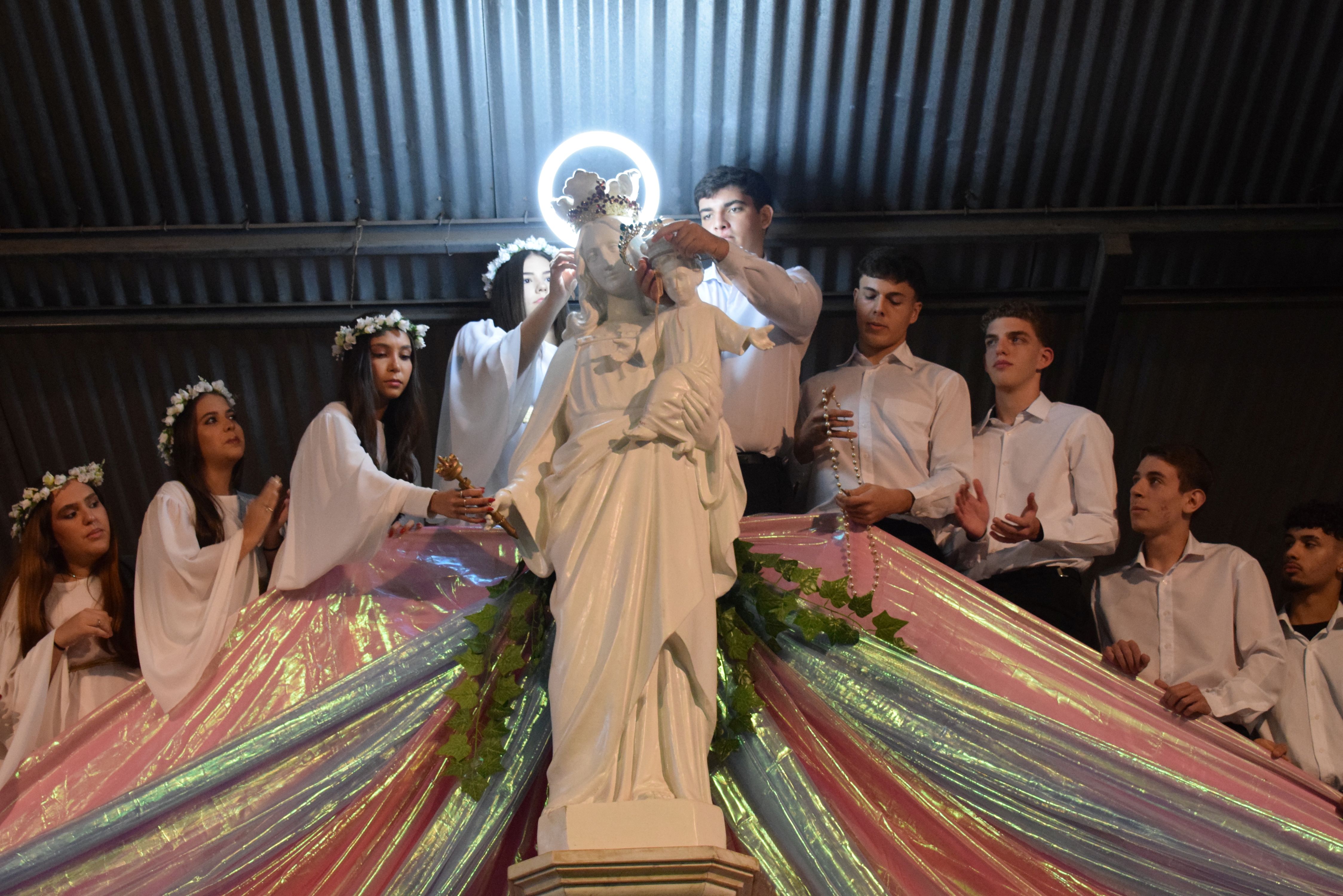 Um dos momentos mais aguardados foi a Coroação de Nossa Senhora Auxiliadora, realizada pelos 24 estudantes mais antigos da instituição, como forma de preservar e valorizar essa significativa tradição.