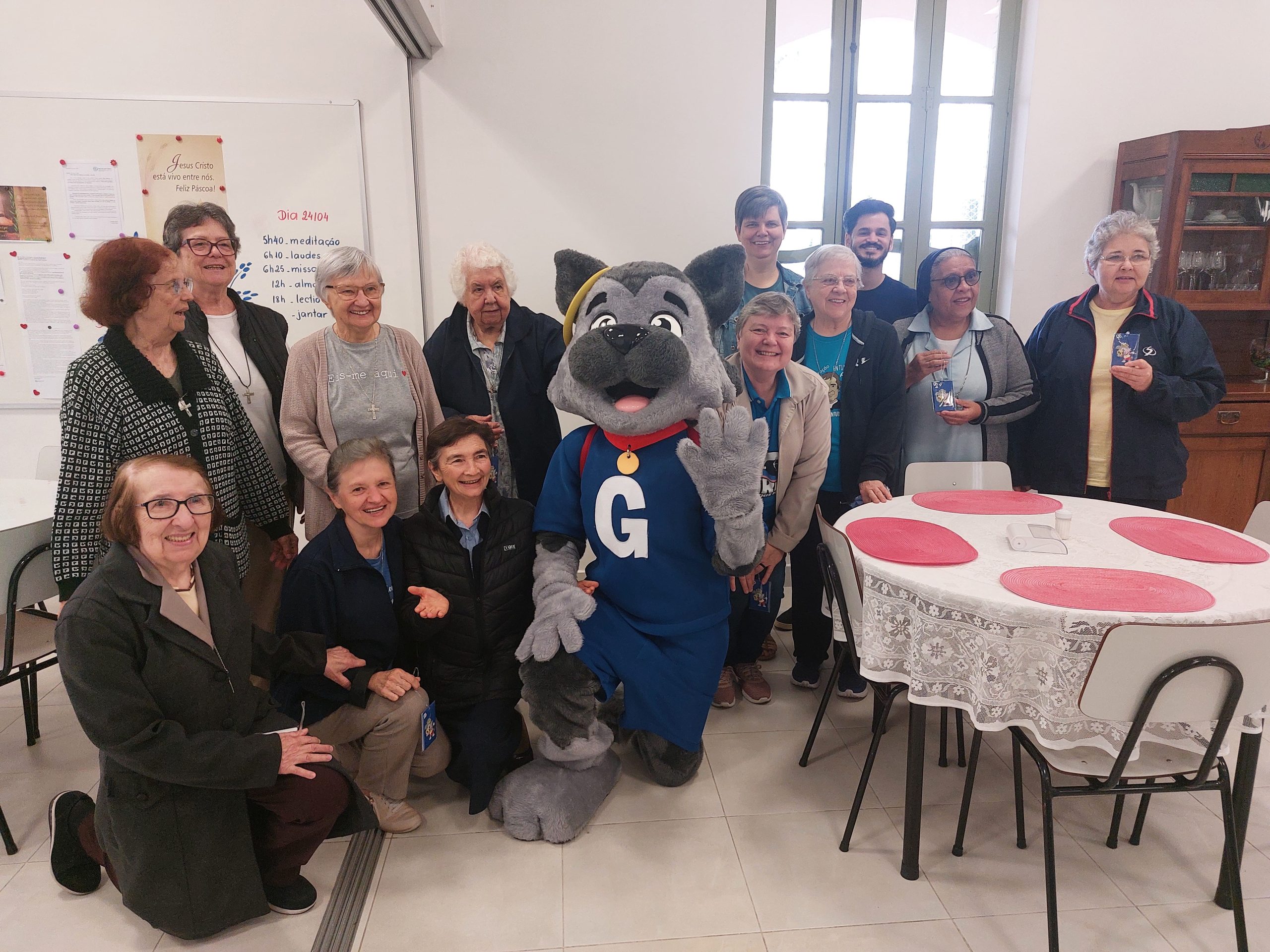 No último dia 24 de abril, as escolas da Associação Educacional Irmãs Salesianas de São Paulo (AEISSP), pertencente à Inspetoria Nossa Senhora Aparecida (BAP), celebraram de forma integrada o lançamento oficial do mascote Grigio, que representa uma presença amorosa e protetora entre crianças e jovens nas casas salesianas.