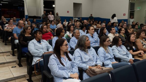 Representando a diretora financeira, Ir. Dilma Canavarro, e a diretora presidente, Ir. Ivone Ranghetti, a coordenadora da pastoral da saúde, Ir. Iara Poffo recebeu a linda homenagem de moção de reconhecimento ao Hospital Auxiliadora. “Se estamos hoje vivendo esses 105 anos, é porque as raízes realmente foram profundas, posso comparar a história do hospital a uma árvore, os frutos estamos colhendo hoje, o objetivo maior de todo nosso trabalho é olhar a pessoa, olhar e construir a vida, e ela vem sendo construída através de todas as pessoas que estiveram e estão aqui hoje representando”. E completou: “Toda essa missão vem sendo realizada por uma equipe tão grande, não estamos sozinhos, estamos com muitas pessoas ao nosso lado, oferecendo o melhor de si para que muitas vidas sejam salvas”, afirmou.