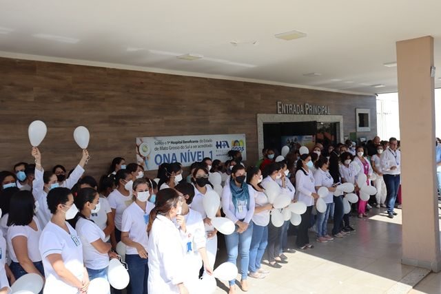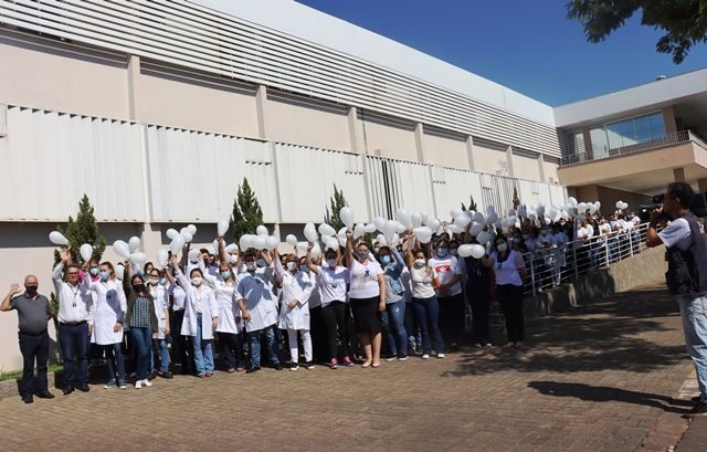 A ação aconteceu nesta terça-feira (19), na frente da "Entrada Principal", reuniu centenas de colaboradores que como forma de ato simbólico pelo déficit do SUS se vestiram de branco e pediram melhores condições de investimentos ao setor público da Saúde, especificamente em hospitais filantrópicos.