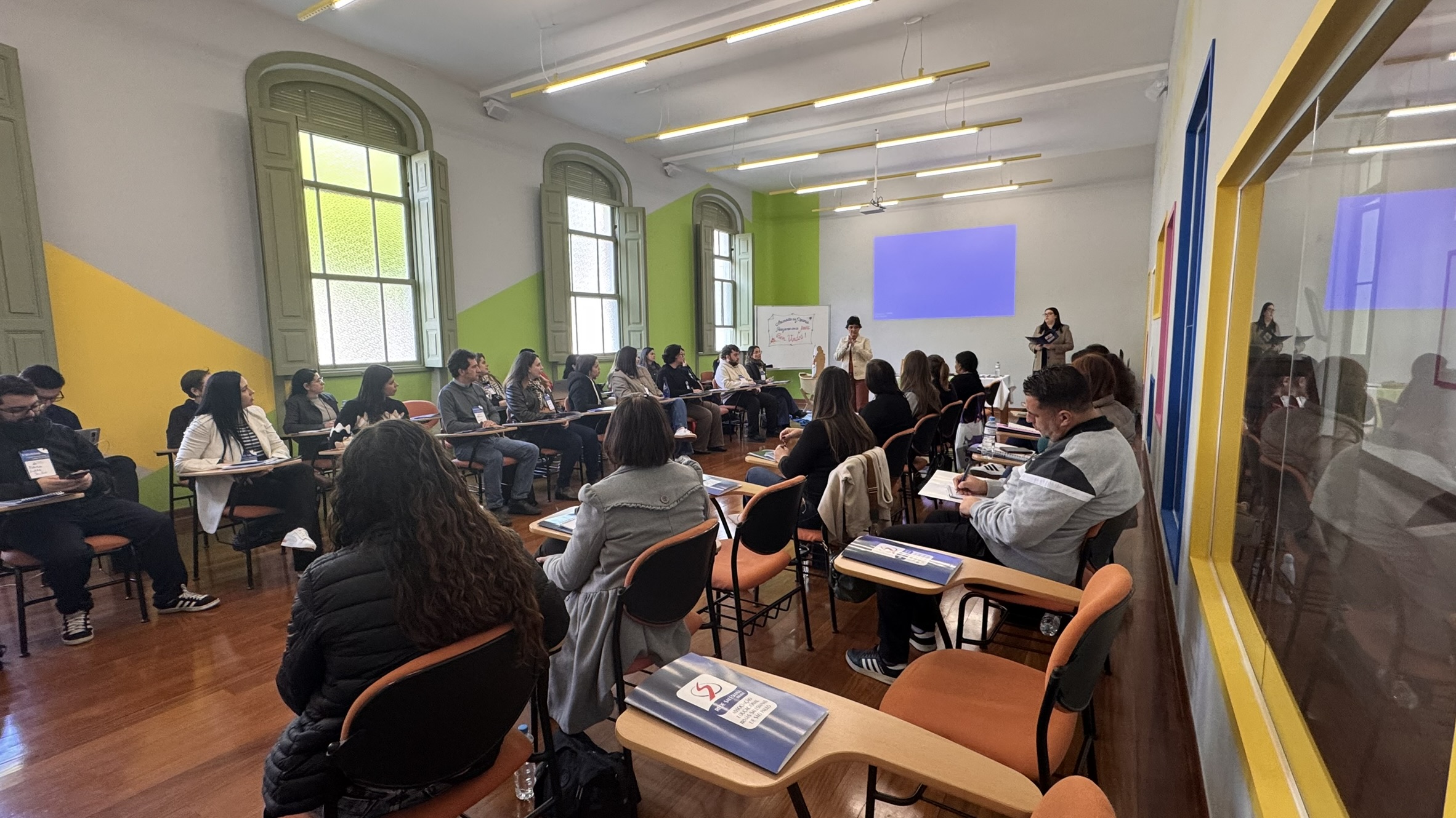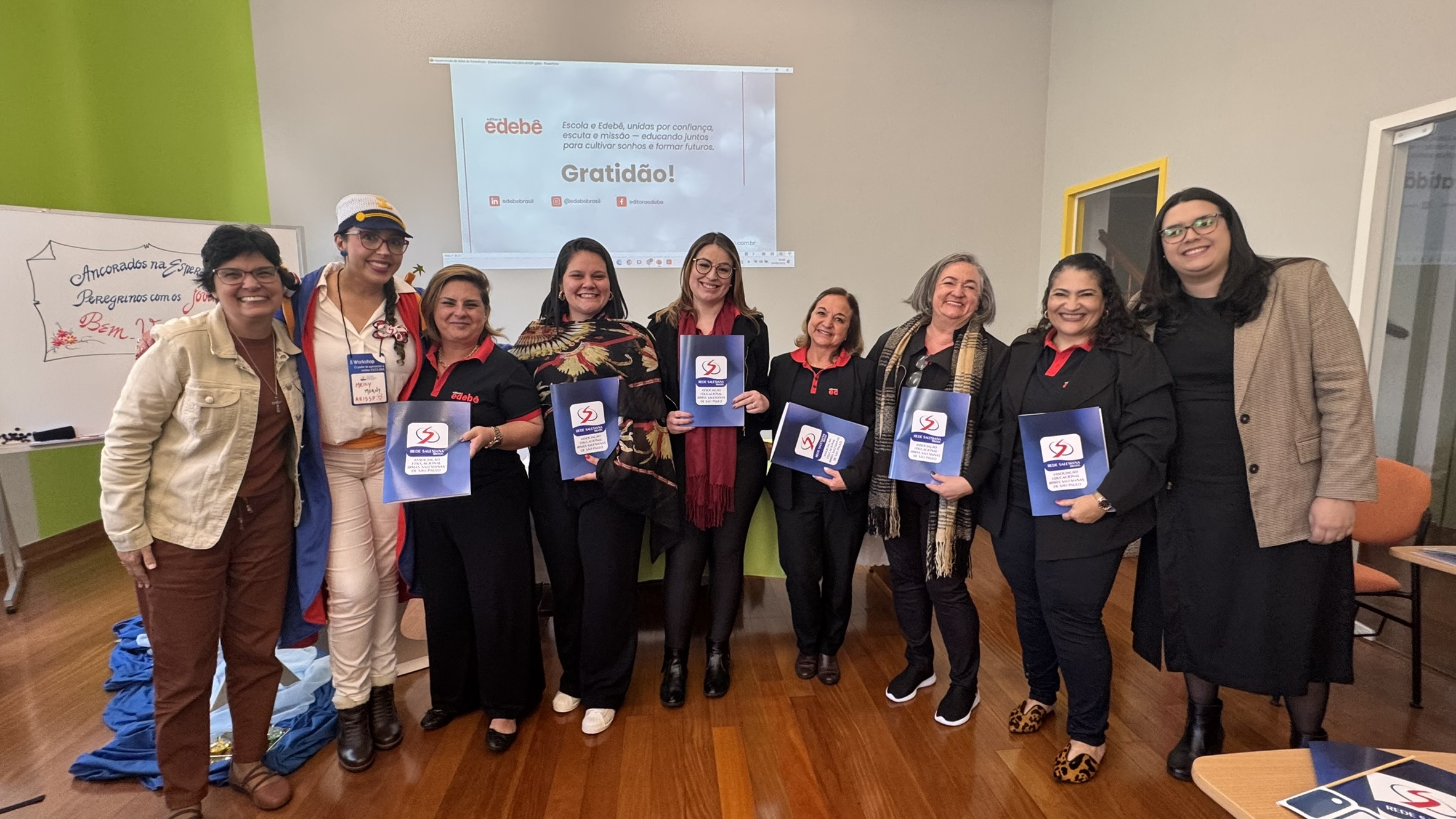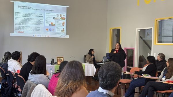 A oficina Edebê: uma Editora Salesiana a Serviço da Educação com Propósito conduzida por Gabriela Palomo Capila de Melo, Diretora de Produtos da Edebê, e sua equipe de Consultoras – Fabiana Sarlo, Laiana Rosendo, Midiã Medeiros, Thereza Peres e Taiane Brito – apresentou a essência das Coleções Girolhar, Nautas, Rotas e Identidade, livros didáticos utilizados pelas escolas da AEISSP. Com abordagens inovadoras e práticas interativas, a Edebê revelou seu compromisso educacional e social, demonstrando que cada página de seus materiais é uma ferramenta poderosa em prol de uma educação com intencionalidade pedagógica.