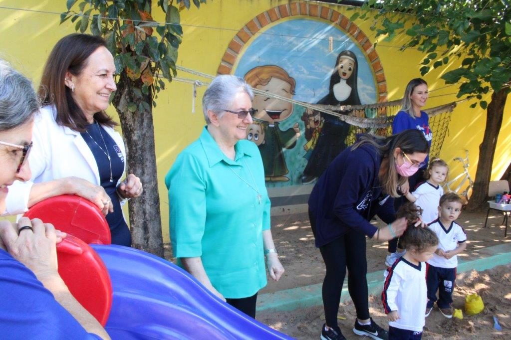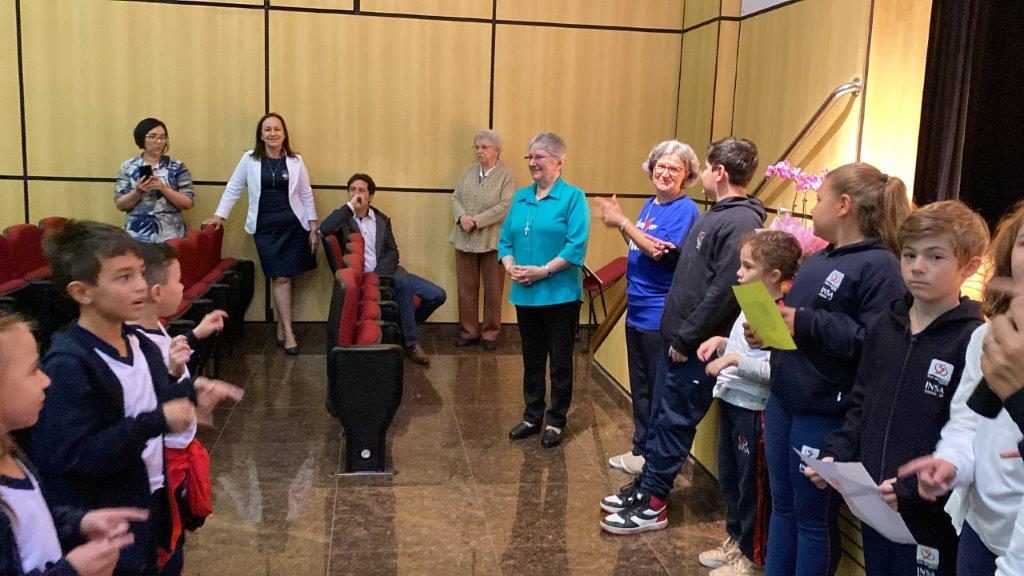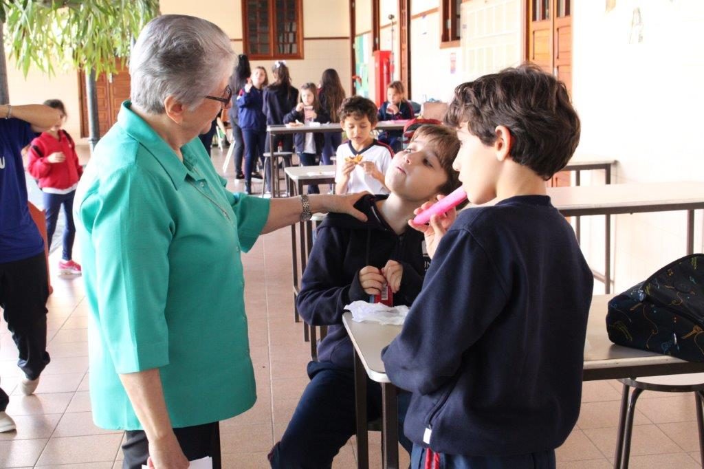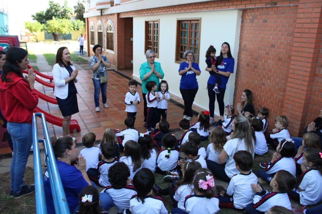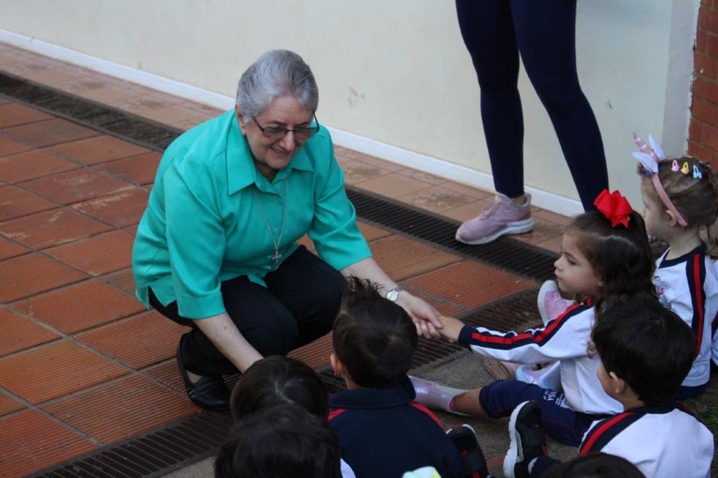 No período da tarde, as crianças da Educação Infantil deram as boas-vindas para Irmã Alaíde e Irmã Solange da forma como bem elas sabem fazer: com muito carinho! A programação foi encerrada com um momento de convivência e o “Boa tarde” festivo envolvendo os estudantes do Ensino Fundamental I.