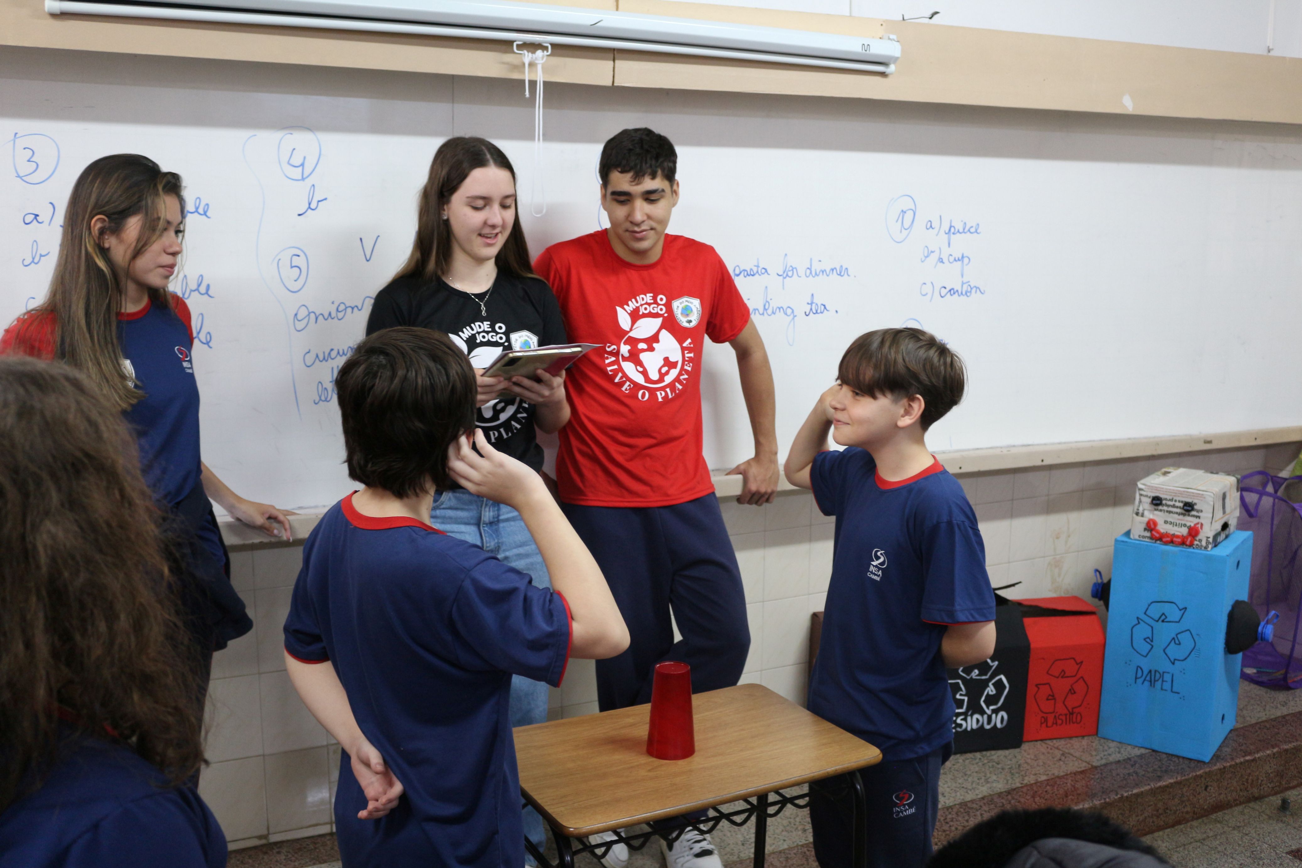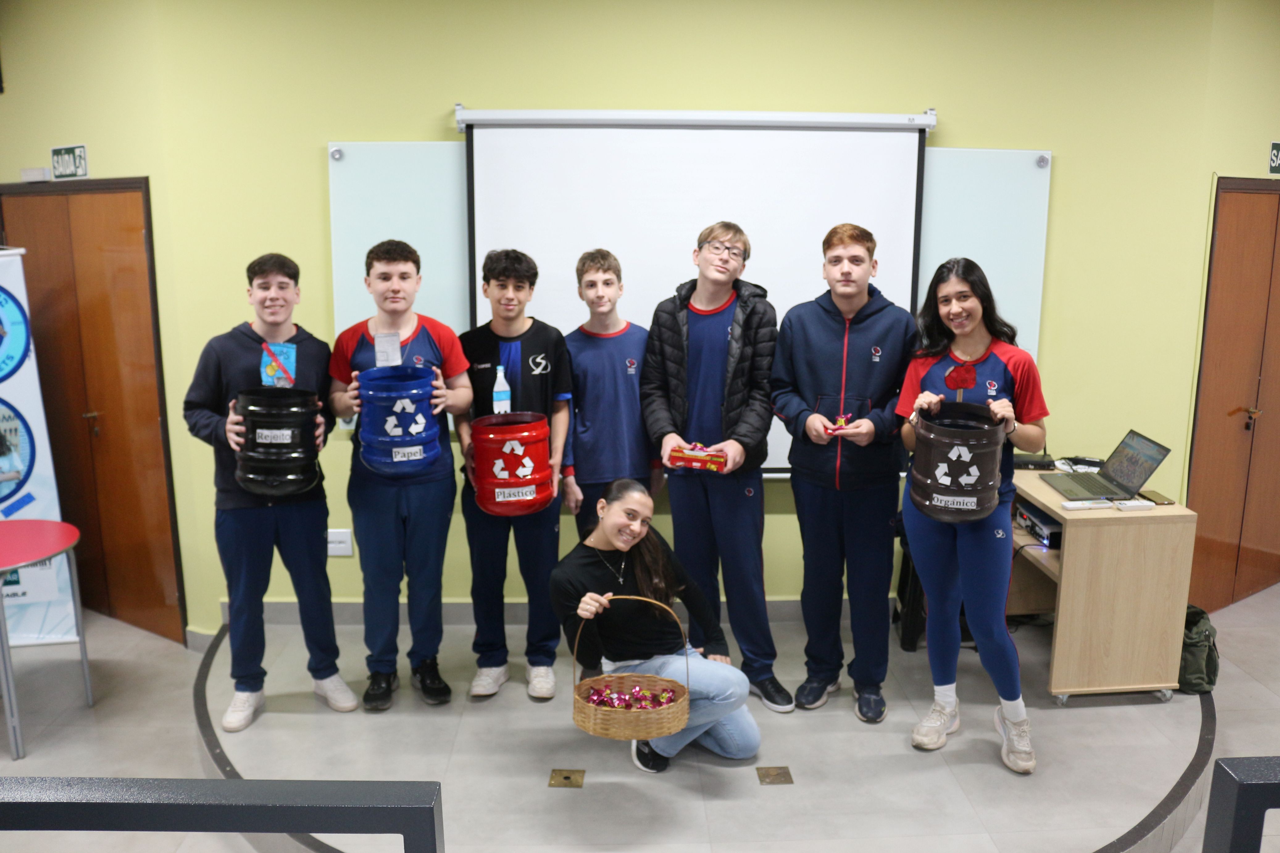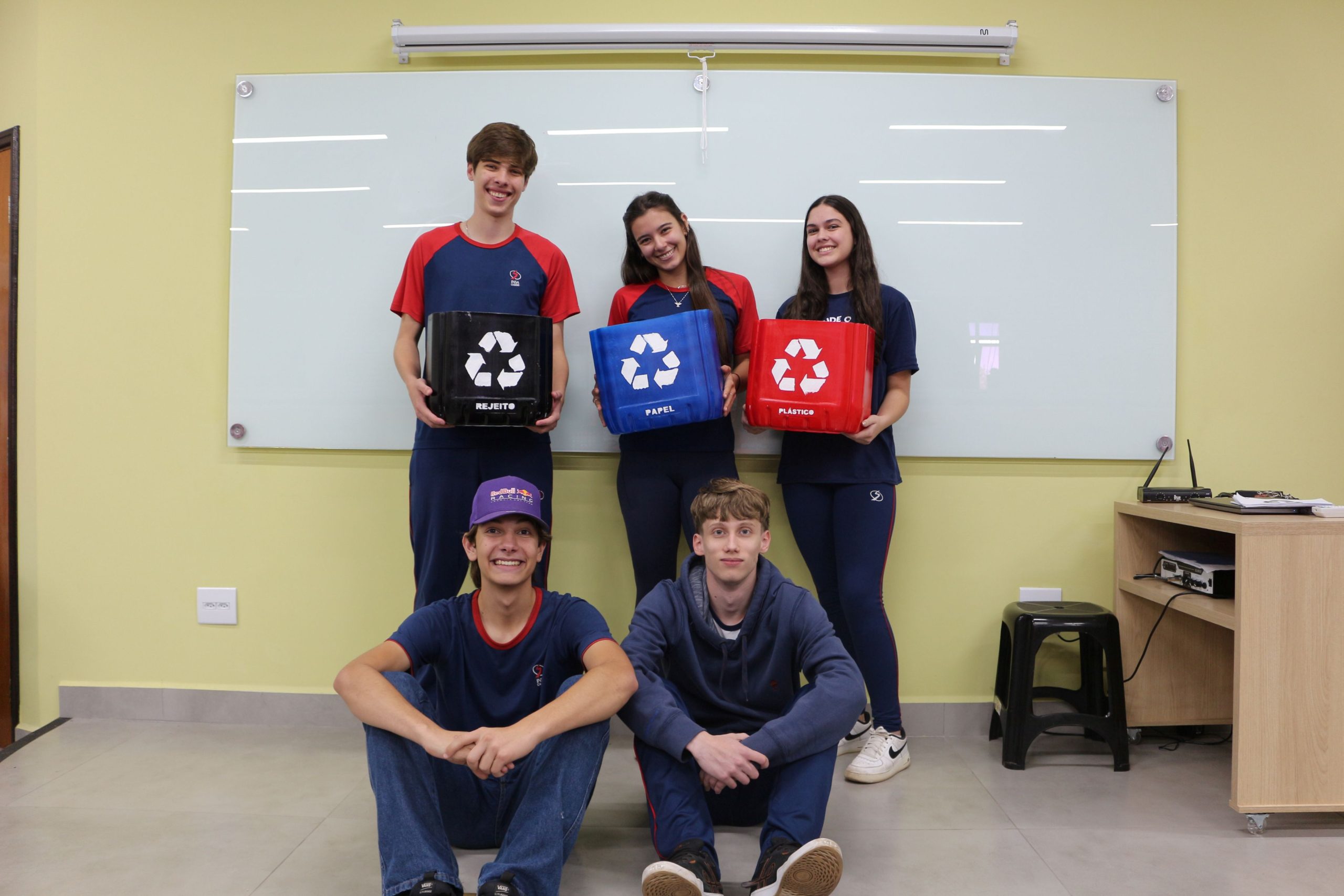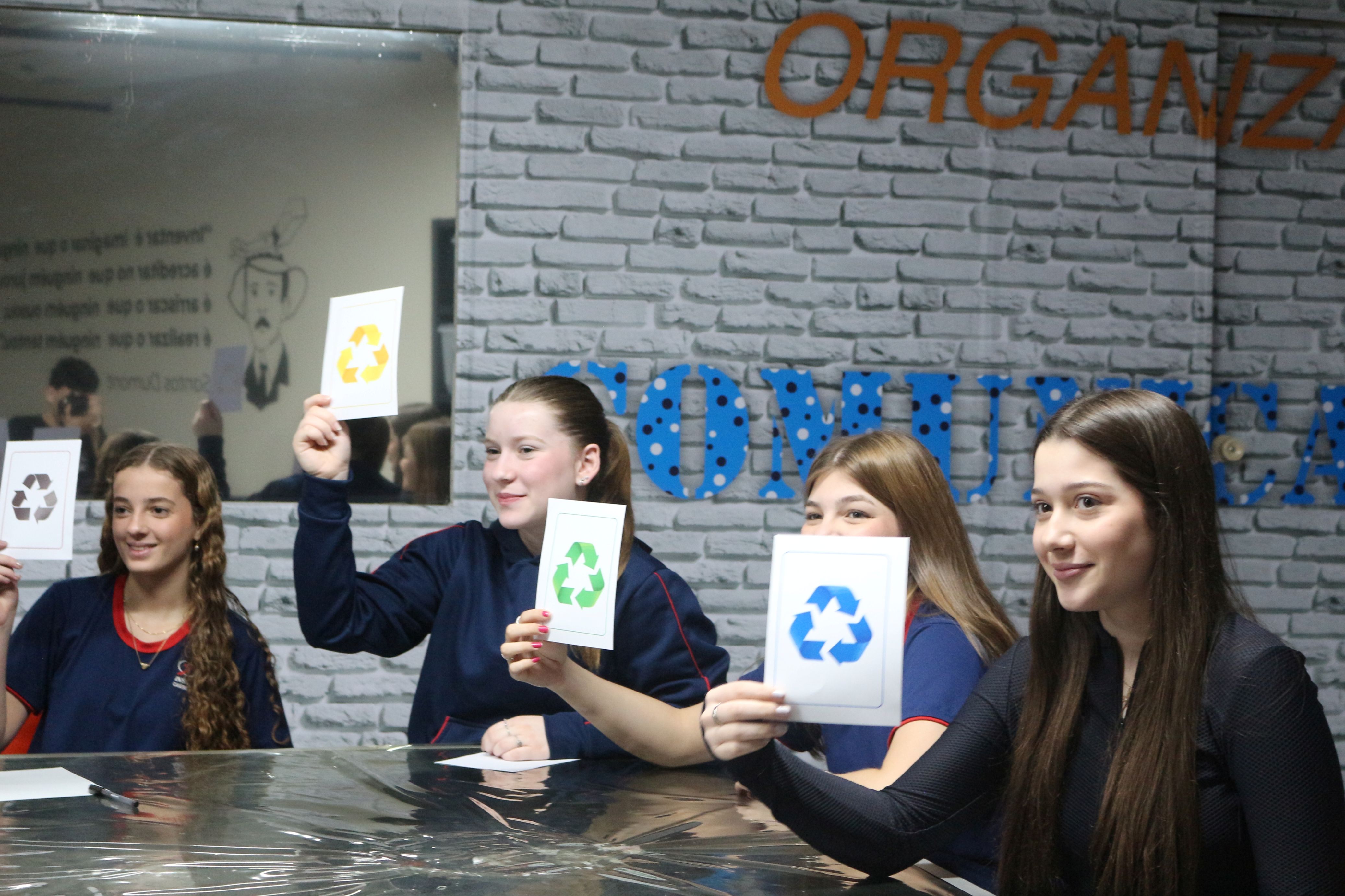 No projeto “Lixo Zero, Resíduo Consciente”, os estudantes da 2ª série do Ensino Médio, do Instituto Nossa Senhora Auxiliadora, de Cambé (PR), sob a orientação da professora Naibi, desenvolveram uma série de ações no itinerário formativo de Sustentabilidade com o objetivo de promover a conscientização ambiental e incentivar práticas mais responsáveis no descarte de resíduos. Houve também a colaboração das professoras de Língua Portuguesa, Carla e Isabela.
