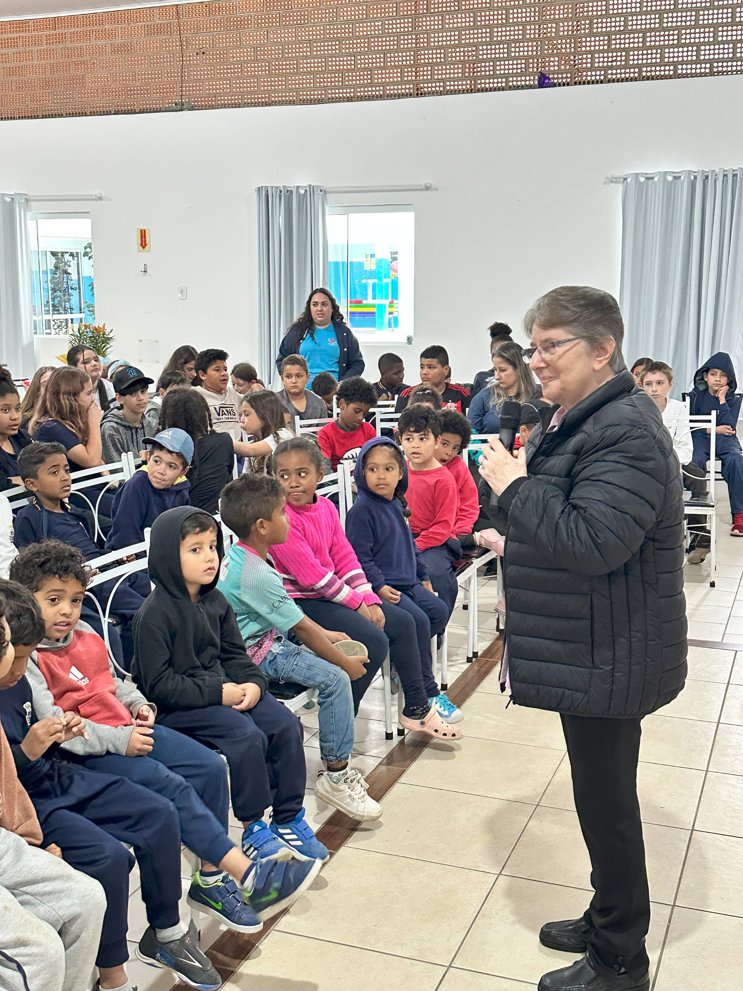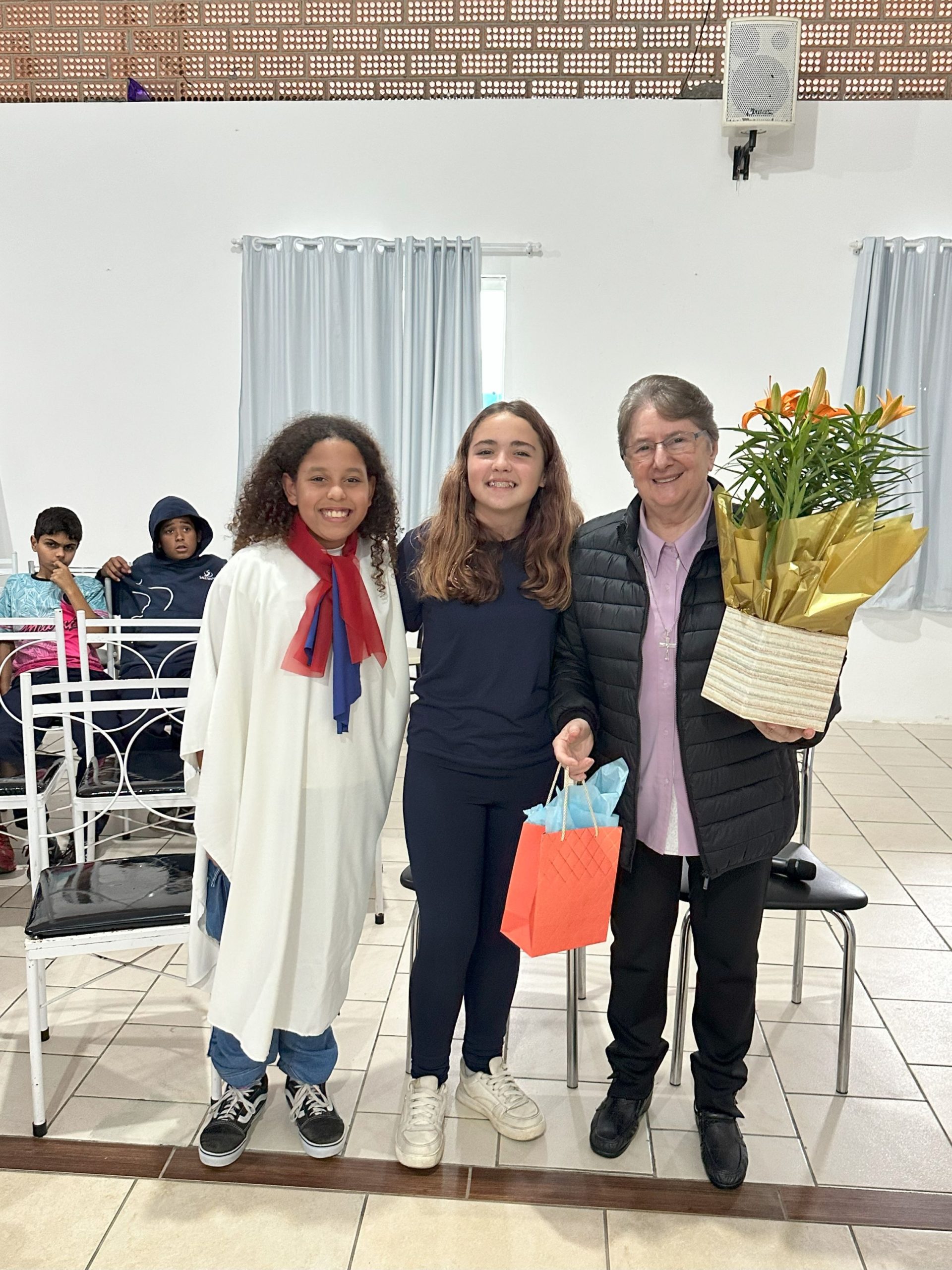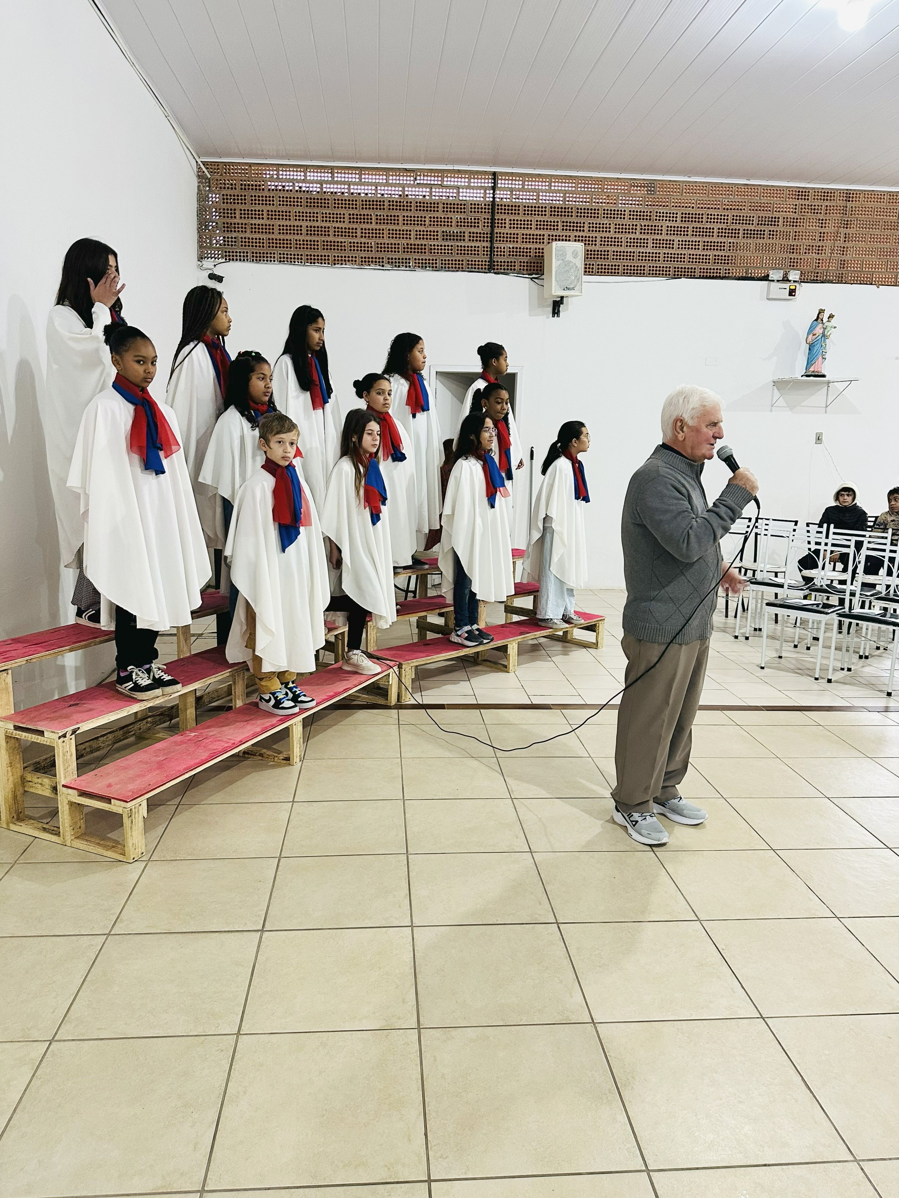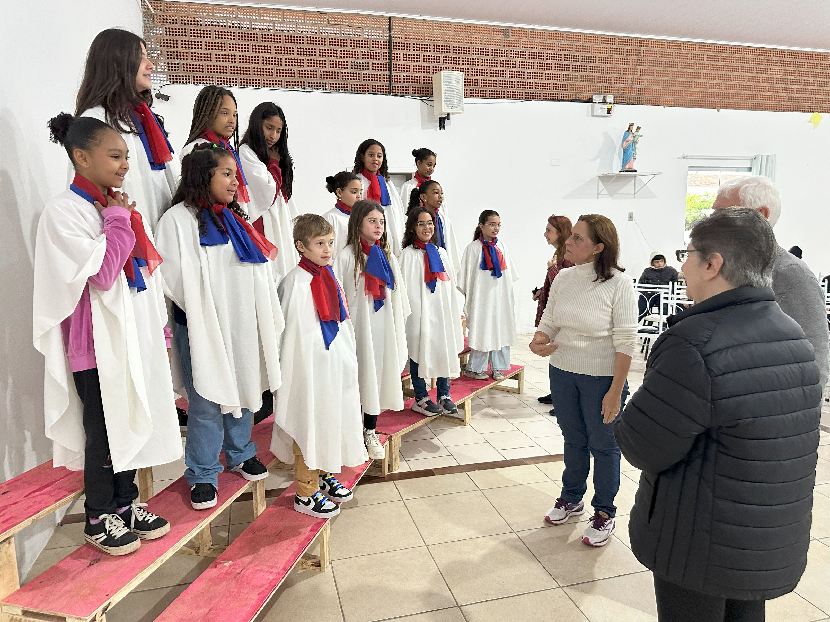 Após a bela performance, Irmã Alaíde parabenizou os integrantes do coral e incentivou a inclusão de mais crianças no grupo, ressaltando a importância de cultivar a força interior para reavivar o fogo do amor, da gratidão, do respeito, da empatia e da esperança.