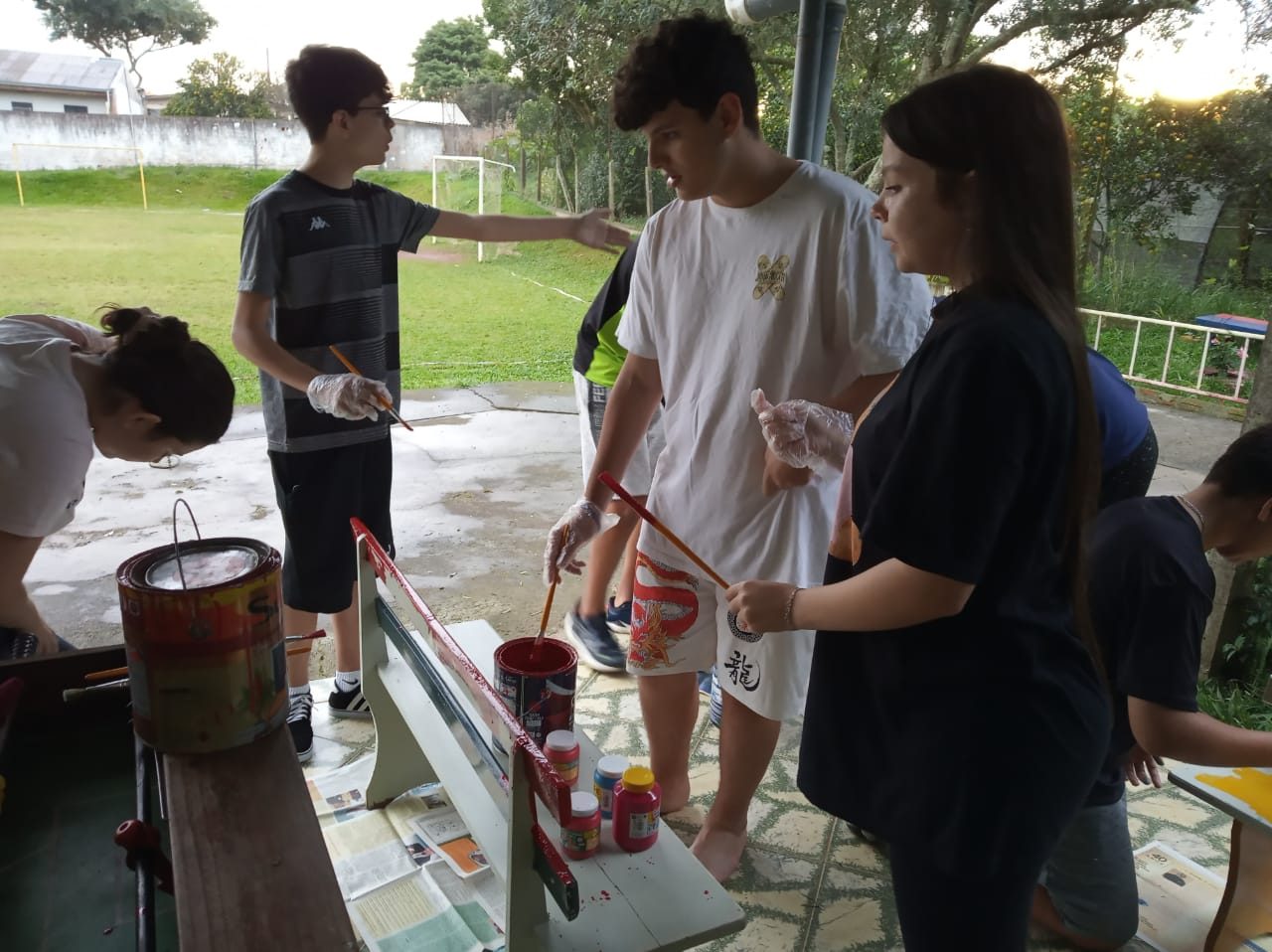 No último dia 29 de abril, o Instituto de Ação Social João Paulo II, de Guarapuava, no Paraná, acolheu 8 adolescentes pertencentes à Articulação da Juventude Salesiana (AJS), provenientes de Cambé, cidade localizada no norte do estado paranaense. Os adolescentes participam da AJS do Instituto Nossa Senhora Auxiliadora e, acompanhados pelos coordenadores Rosana e Vinícius, viajaram mais de 300 km para realizar a Páscoa Juvenil naquela que é conhecida como a “Capital paranaense da cevada e do malte”. O encontro teve início já na sexta-feira com a partilha do almoço. Nesse mesmo dia, os integrantes da AJS realizaram um gesto concreto bem colorido: pintaram alguns bancos, organizaram o jardim e ilustraram brincadeiras no chão. O dia foi encerrado com um “Círculo de integração” realizado pela Rosana, envolvendo tanto os adolescentes da AJS de Cambé quanto os de Guarapuava. O “Círculo de integração” oportunizou um momento forte de partilha, de escuta e de acolhida. No dia seguinte, o grupo se deslocou até a Comunidade Santa Rita, localizada no Residencial 2000, que é um dos loteamentos de Guarapuava, onde realizou uma ação missionária, visitando as casas das famílias e levando uma mensagem de esperança à comunidade. No final da tarde, foi realizado um Oratório Festivo, típico da espiritualidade salesiana, repleto de brincadeiras e de muita alegria: pintura no rosto, futebol, vôlei e criações artísticas usando massa de modelar, a famosa “massinha”. A tarde foi encerrada com um lanche compartilhado com toda a comunidade. Além de experimentar a “cultura do encontro”, como diz o Papa Francisco, e a vivência da solidariedade através da doação de roupas, calçados e alimentos, os adolescentes e coordenadores também tiveram a oportunidade de reforçar a própria fé, participando da Missa na Comunidade São Luiz Gonzaga. Na manhã de domingo, o grupo retornou para Cambé, muito satisfeito com a experiência da Páscoa Juvenil, avaliada por todos como um momento muito rico e marcante! A Páscoa Juvenil da AJS de Cambé só pôde ser realizada após as festas da Páscoa porque na Semana Santa, um adolescente, do Instituto de Ação Social João Paulo II, foi vítima de um atropelamento. Esta experiência forte motivou ainda mais a solidariedade dos participantes porque ajudou-os a compartilhar mais amor e dedicação.