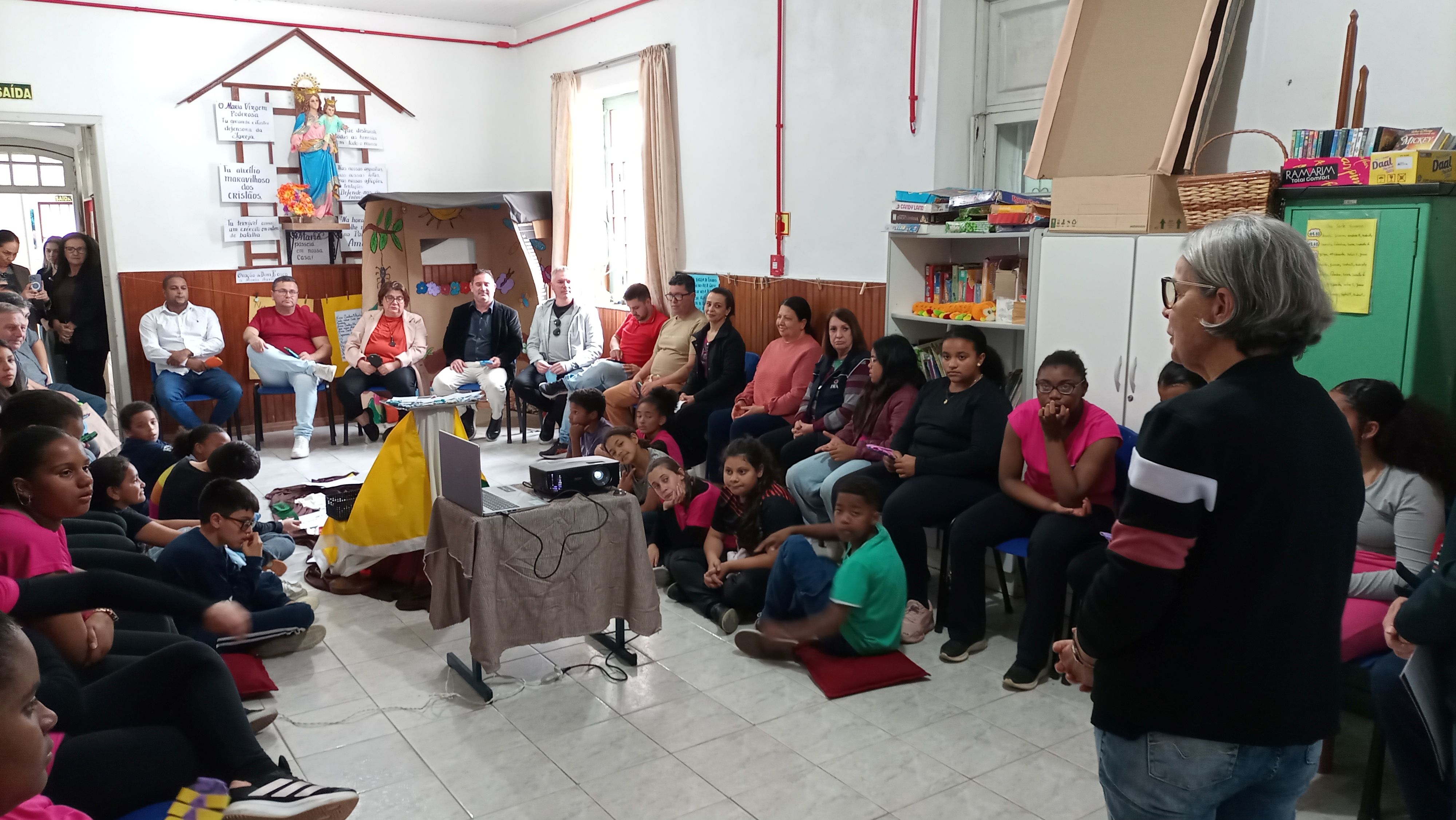No dia 1º de outubro, data em que se comemora o Dia do Vereador, o Instituto Medianeira Casa da Criança (IMCC), de Rio Pardo (RS), promoveu a 1ª Roda de Conversa com o Poder Legislativo Municipal. Mais do que uma homenagem, esse encontro foi planejado como oportunidade de diálogo entre os vereadores de Rio Pardo e um grupo de educandos, com o objetivo de criar um espaço no qual os mesmos pudessem se expressar, contar suas vivências, seus sonhos, suas dificuldades e, principalmente, serem ouvidos com atenção e respeito. O evento também teve o objetivo de fazer com que os vereadores conhecessem mais de perto a realidade do IMCC, os impactos do trabalho realizado e percebessem a importância de políticas públicas voltadas à infância e adolescência.