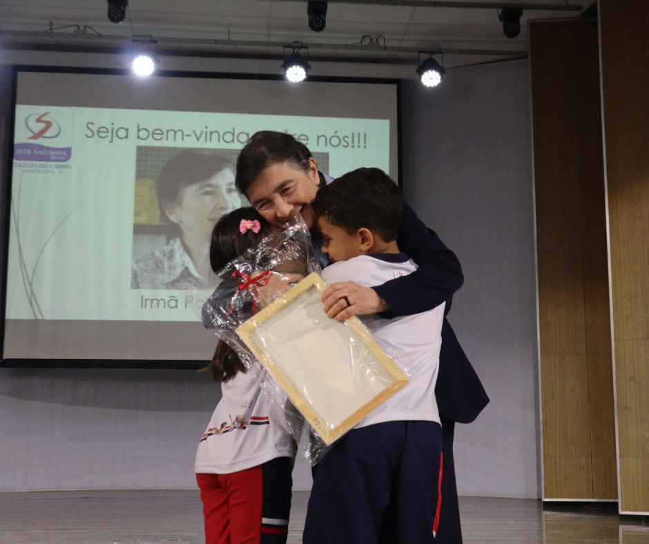 Como parte das homenagens, Irmã Paola recebeu um quadro especial e um texto com palavras carinhosas escritas pelas estudantes do 9º ano do Fundamental II. Essas expressões de apreço e gratidão foram um reflexo do impacto positivo que sua presença teve sobre a comunidade escolar.