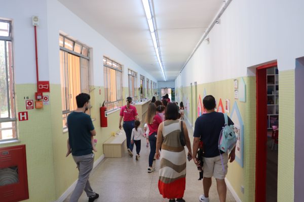 Após o lanche, as famílias seguiram para conhecer os espaços de acordo com o segmento de interesse. As crianças da Educação Infantil e Ensino Fundamental Anos Iniciais foram para o Zezinho (prédio dedicado às turmas desses segmentos) Ali, participaram de brincadeiras e atividades pedagógicas. Já os interessados nos Anos Finais e no Ensino Médio reuniram-se no Zezão (prédio destinado às turmas do Ensino Fundamental Anos Finais). Nele aconteceram atividades pedagógicas antes da apresentação das salas, laboratórios e demais ambientes de aprendizagem.