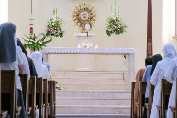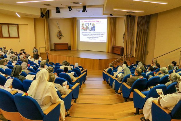Às 18h30, como comunidade orante, as Capitulares vivem um momento intenso de adoração eucarística: é a hora da graça, em Caná e para nós. A Madre convida a refletir sobre a experiência de Jesus e Maria: “é um mistério a ser contemplado e é um incentivo a aplicá-lo na vida cotidiana”.
