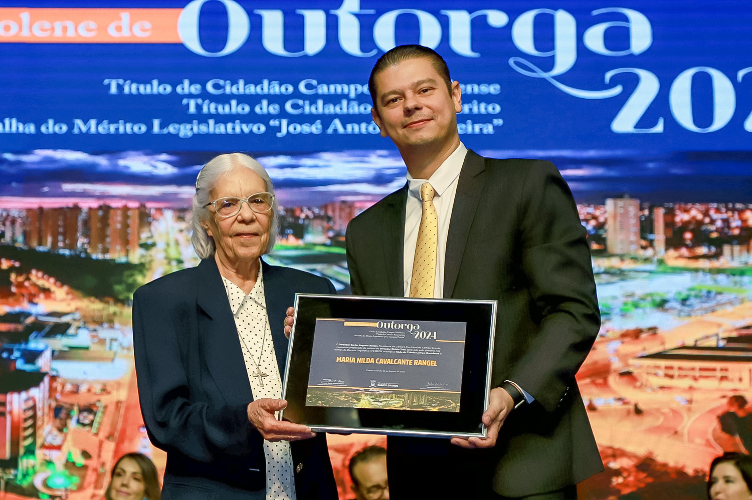 Na noite da última quinta-feira (22), em comemoração aos 125 anos de Campo Grande, os vereadores da Câmara Municipal entregaram homenagens às pessoas que contribuíram com relevantes serviços para a cidade. Dentre elas, a Irmã Salesiana Filha de Maria Auxiliadora (FMA), Maria Nilda Cavalcante Rangel, recebeu o Título de Cidadã Campo-Grandense.