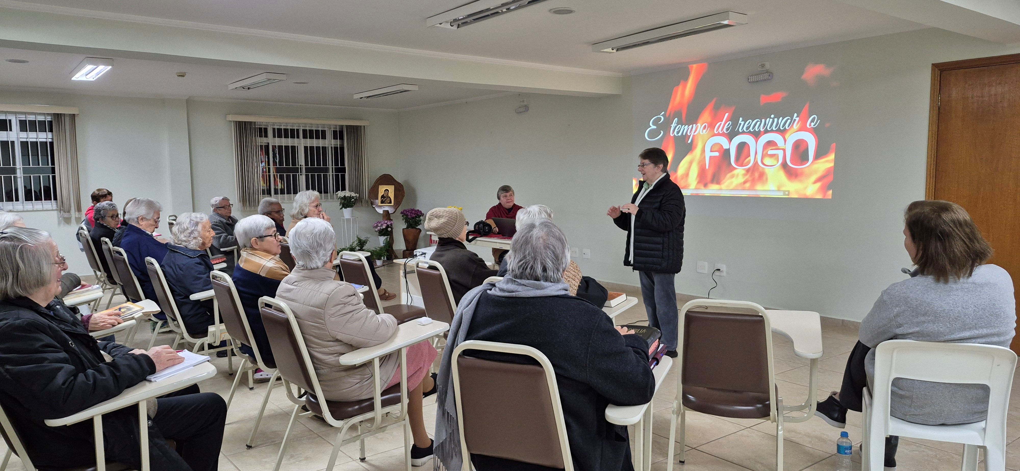 Irmã Alaíde Deretti, Inspetora da BAP, acompanhou o grupo oferecendo a todas as Irmãs a possibilidade de um encontro personalizado e também um tema bastante atual e interessante para o momento do tradicional “Boa-Noite” salesiano.