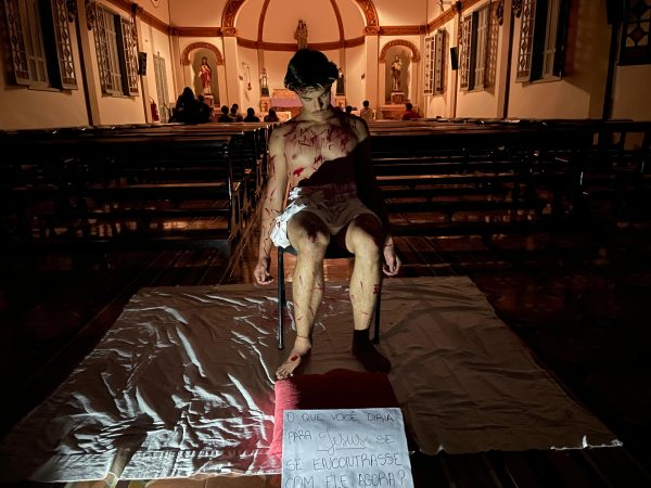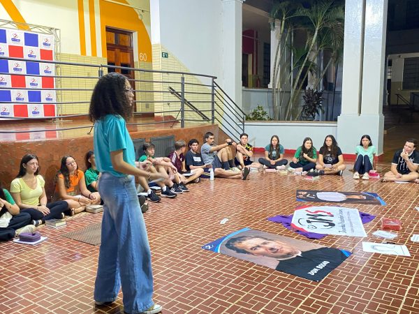 À noite, um momento especial de Adoração ao Santíssimo marcou o encerramento do primeiro dia. Durante a oração, um estudante representou Jesus flagelado, enquanto os demais meditavam sobre a dor, a entrega e o amor de Cristo por toda a humanidade.