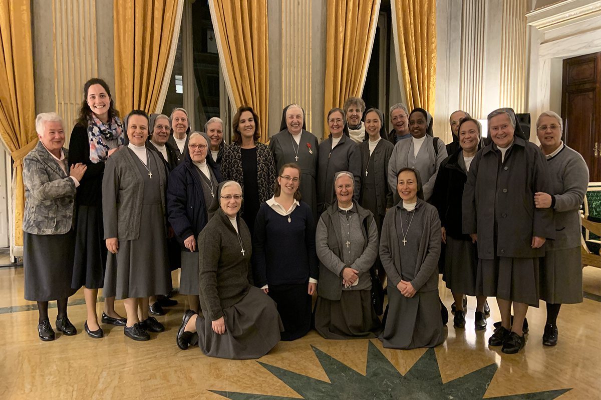 Madre Yvonne Reungoat, assim se dirigiu ao público: « R conquistou a si mesmo como embaixador por esta grande e delicada atenção que revela sua sensibilidade pela promoção, valorização das mulheres e das mulheres consagradas, reconhecendo seu lugar específico na sociedade. Desejo dedicar esta condecoração a todas as mulheres consagradas do mundo que, entregando a sua vida a Deus, a colocam ao serviço dos mais pobres, dos mais desfavorecidos, dos rejeitados. Muitas vezes estão presentes nos cantos mais isolados da terra, onde a pobreza em todas as suas formas é extrema, onde a violência assola e mata, todos os dias, muitas mulheres e crianças inocentes, onde ousar manifestar a fé é um risco de vida. Eles optam por permanecer entre seus povos, compartilhando seu sofrimento, sendo uma presença simples que se torna proximidade, tentando acender uma pequena luz que sustenta a esperança quando a escuridão parece invadir o horizonte. O amor, expresso em gestos quotidianos de proximidade, escuta, partilha, é fonte de vida nova ”.