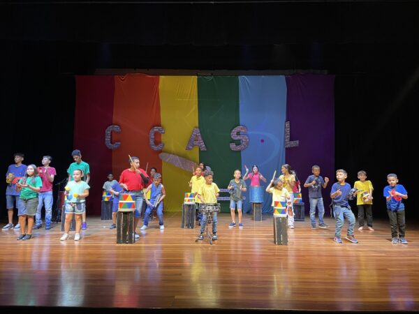 A Mostra Artística é um momento especial, em que as crianças e adolescentes atendidos pelo CCA têm a oportunidade de apresentar os conhecimentos e talentos desenvolvidos ao longo do ano. Na área de Música, sob a orientação do educador Miguel, foram apresentadas duas impactantes performances de percussão: Luta pela Atenção e Frevo na Favela, que misturaram ritmos e energia, explorando tanto a tradição quanto a contemporaneidade.