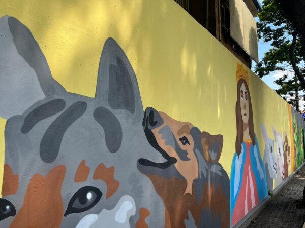 Mural artístico transforma muros do Instituto Coração de Jesus em homenagem a Dom Bosco e Madre Mazzarello