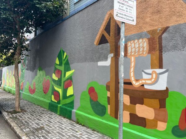 A arte também faz referência ao sonho profético de Dom Bosco que, aos nove anos, recebeu a missão de guiar os jovens com mansidão e caridade. Outro símbolo destacado no mural é o Poço de Madre Mazzarello, local onde ela buscava água e forças para suas obras, representando a espiritualidade como alicerce de transformação.