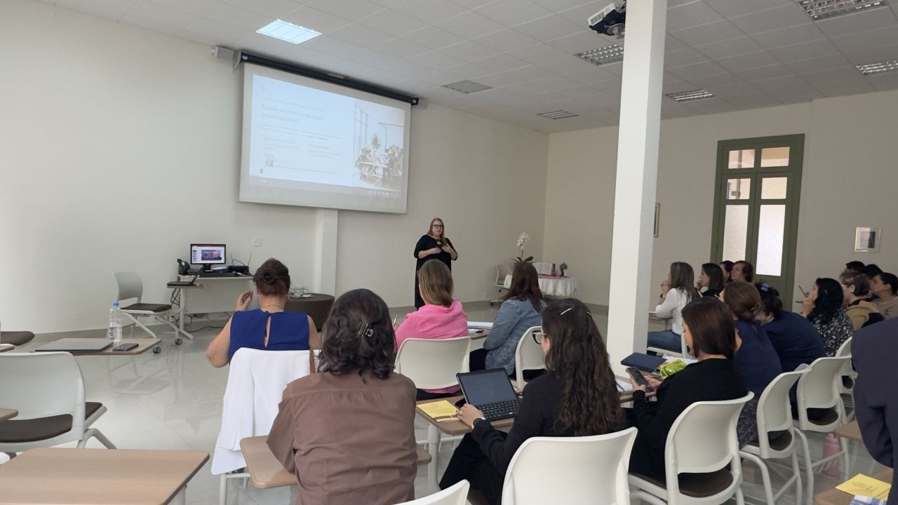 A programação teve início às 8h30, com acolhida e café da manhã, promovendo um ambiente de integração entre os participantes. Às 9h, a diretora-presidente da AEISSP, Ir. Adair Sberga, conduziu o momento de oração inicial e realizou a abertura oficial do encontro com uma mensagem de boas-vindas.