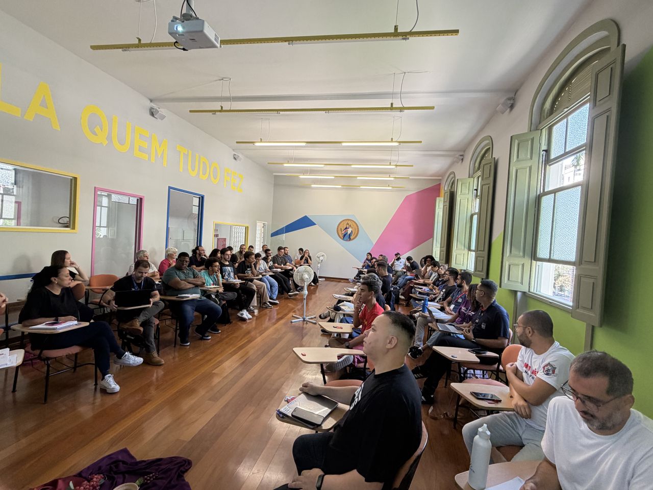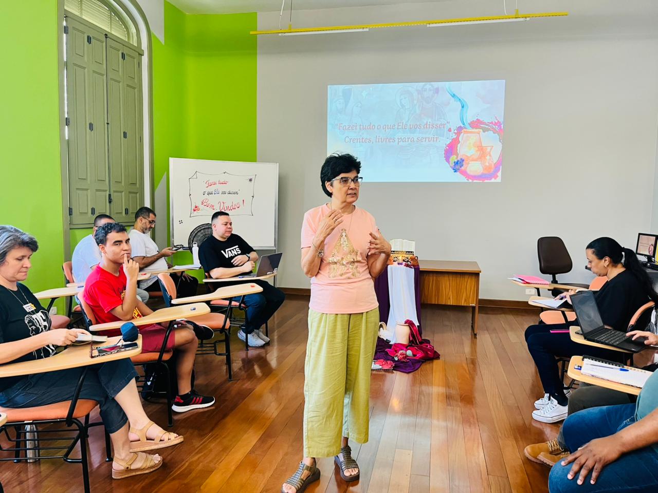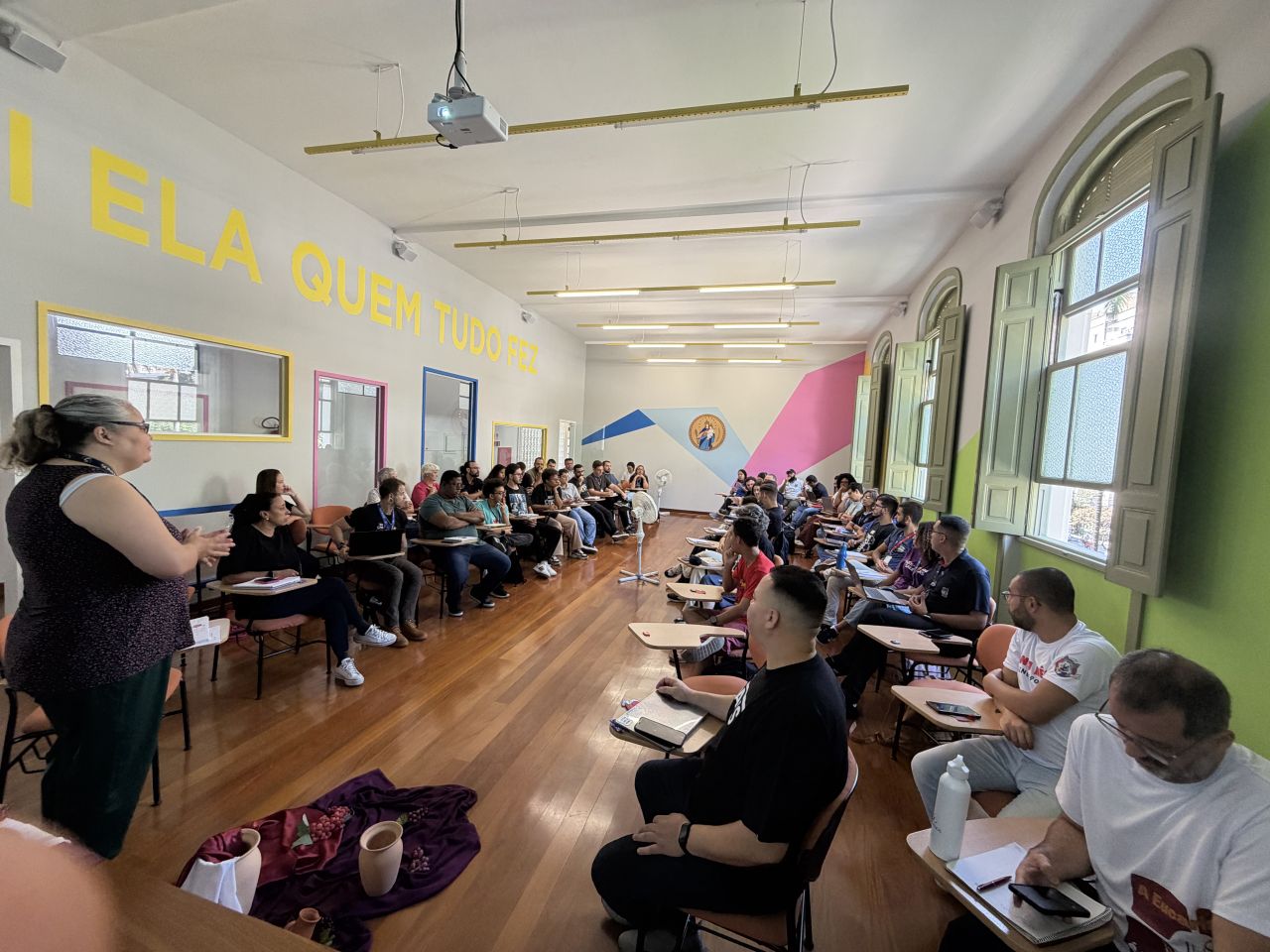 A programação teve início com um momento de oração conduzido pela Ir. Teresa Cristina Domiciano, Coordenadora Inspetorial da Pastoral Juvenil, que recordou o tema da Estreia 2026: “Fazei tudo o que Ele vos disser: crentes, livres para servir.”