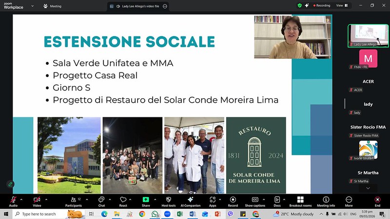 Entre as intervenções principais, o padre Rany Geraldino aprofundou o tema da transformação social no espírito da sinodalidade, enquanto a irmã Ivone Goulart Lopes, referente das ISS-FMA, apresentou a realidade das ISS-FMA como redes educativas que transformam, capazes de unir memória, presença, missão e profecia na construção de um mundo mais justo e sustentável.