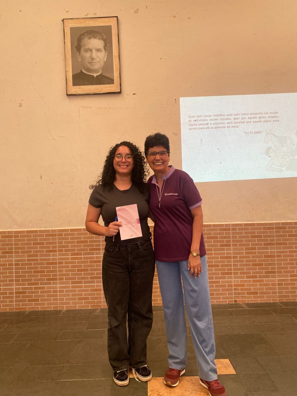 Durante sua participação, Irmã Teresa Cristina convidou a irmã Graça para realizar a leitura da parábola do Bom Samaritano, proporcionando um momento de reflexão sobre empatia, solidariedade e cuidado com o outro.