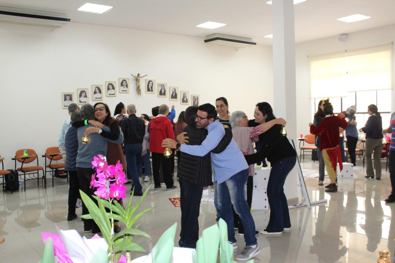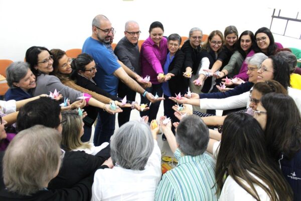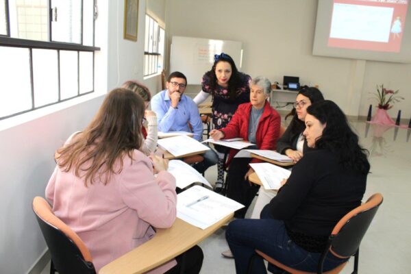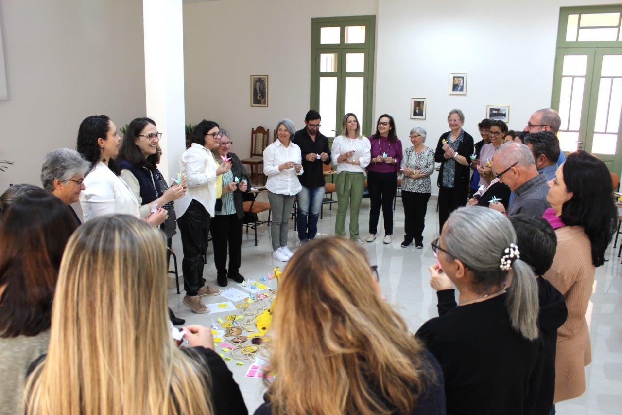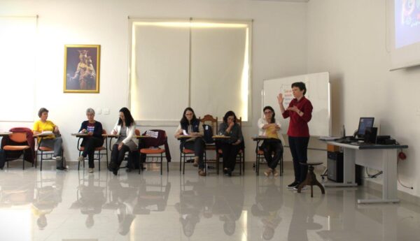 Na sequência, o grupo viveu um momento especial de formação, orientado por Irmã Solange Sanches e pela educadora do Instituto Nossa Senhora Auxiliadora (INSA), de Cambé (PR), Rosana Magri, que proporcionou a experiência dos “Círculos de Construção da Paz”. Ao mesmo tempo em que Rosana apresentava pontos teóricos sobre a Comunicação Não-Violenta, de Marshall Rosenberg, ela oferecia ao grupo a possibilidade de vivenciar o “Círculo” em suas etapas, a fim de que a aprendizagem se desse por meio da prática.