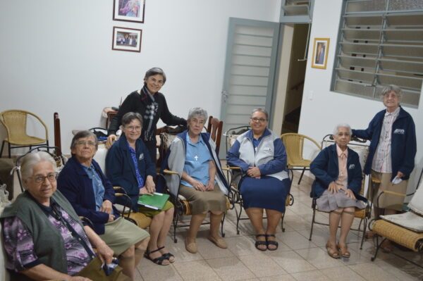 Dia 09 de junho tivemos a alegria de vê-la entre nós. Embora rápida, sua presença em cada comunidade trouxe serenidade, fraternidade, escuta... Sua alegria simples e contagiante incentivou a todas no empenho e entrega pelo Reino de Deus na missão e vivência do nosso carisma. Ir. Nilza orientou em cada comunidade a Lectio Divina, com o tema da Visitação de Maria a Santa Isabel e deixou alguns questionamentos: o que nos move a sair depressa? Como são nossos encontros? O que podemos aprender com a experiência do encontro de Maria e Isabel?