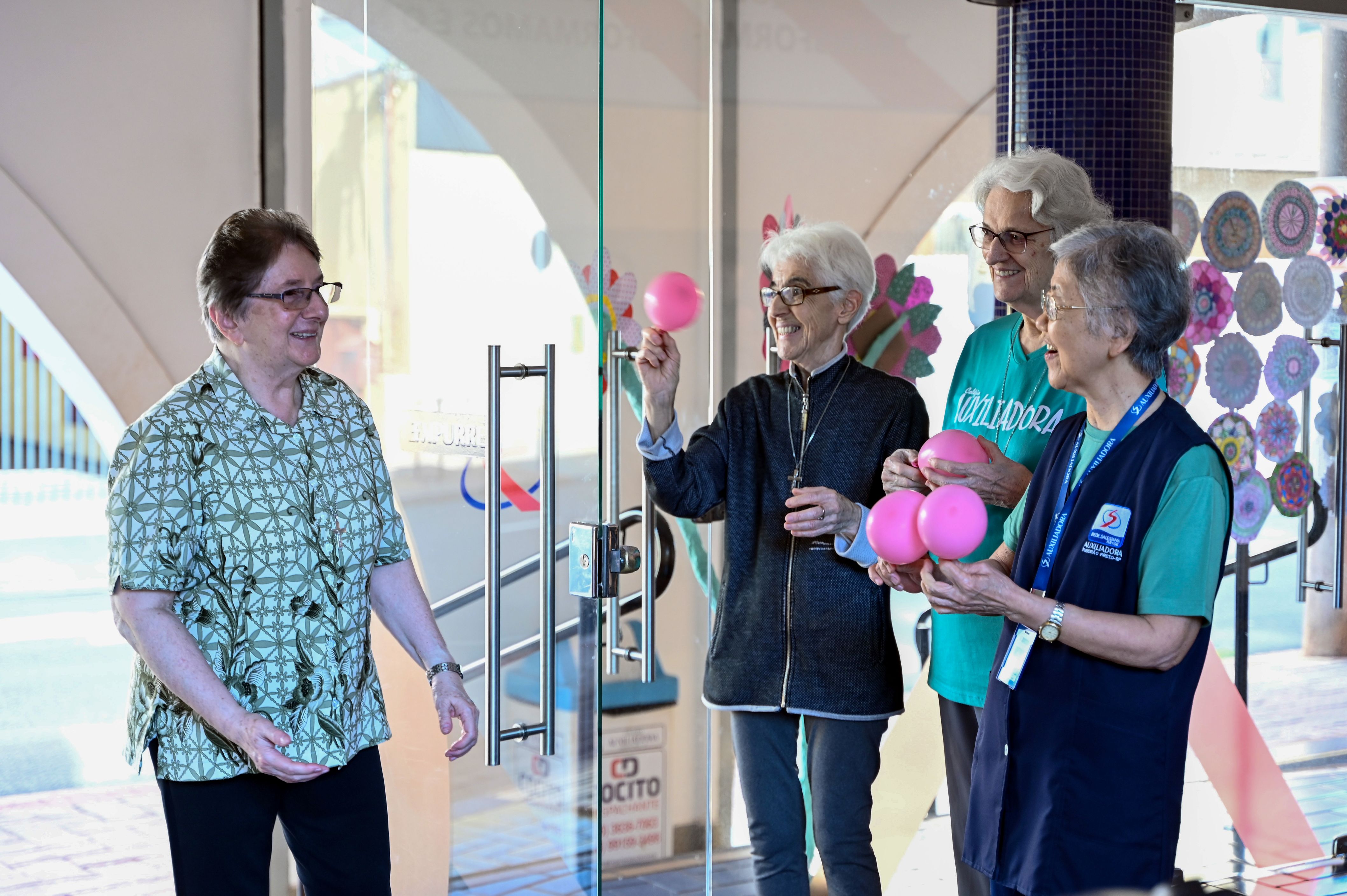 Durante sua permanência, Irmã Alaíde dialogou com os estudantes e com a equipe gestora e comunidade religiosa. No encontro com a equipe gestora, ela pode escutar os desafios cotidianos enfrentados pela escola, além de conhecer os projetos que vêm fortalecendo o carisma e a missão educativa do colégio.