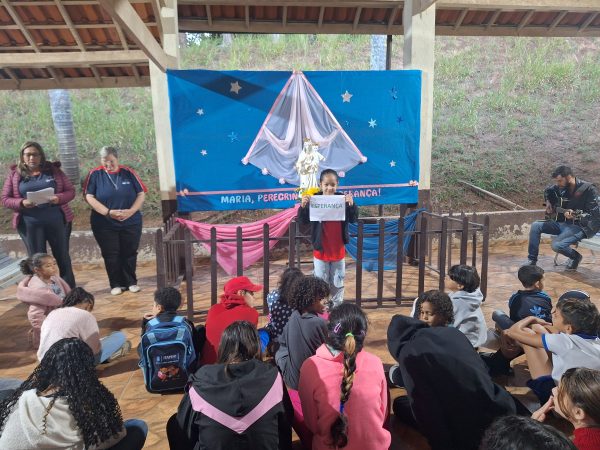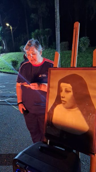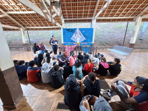 O grupo, em torno de 50 participantes, se reuniu em frente ao altar de Maria Auxiliadora para o início da novena e oração e lembrou do que Madre Mazzarello sempre dizia para as suas jovens: “Confiem sempre em Maria, pois ela é a verdadeira superiora da casa”.