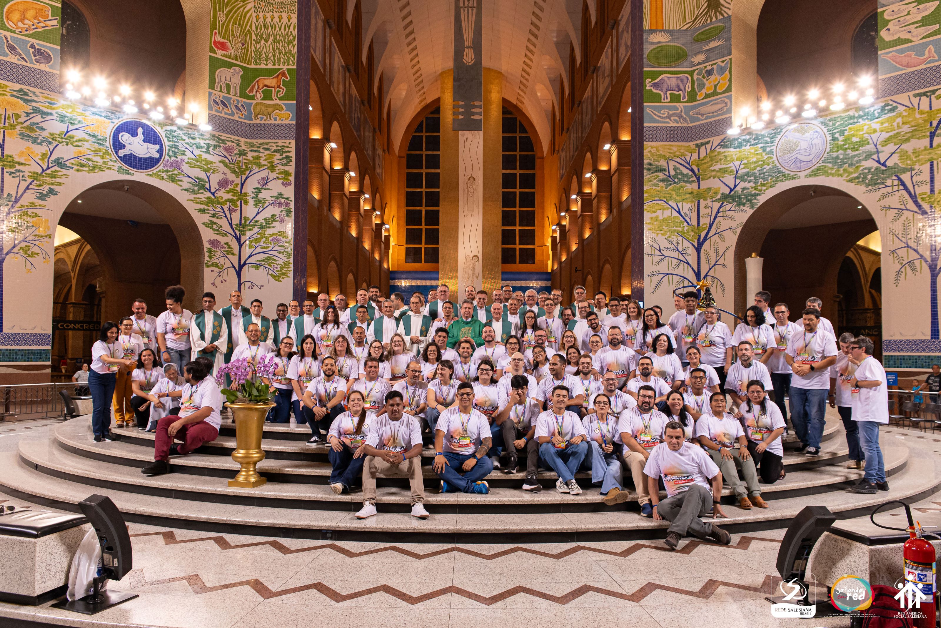 Com o tema “Sonhando em Rede”, o Encontro Continental de Obras e Serviços Sociais Salesianos na América reuniu, em Aparecida (SP), nos dias 09 a 13 de setembro mais 120 participantes, salesianos, salesianas e leigos das diversas presenças sociais de toda a América. O evento contou a presença de diversos representantes do mundo salesiano: Pe. Miguel Ángel García Morcuende (Conselheiro Geral para a Pastoral Juvenil), Ir. Sarah Garcia (Responsável pela Oficina de Direitos Humanos do Instituto das FMA, Representante Principal ante as Nações Unidas e Referente da Ação Social), Pe. Joseph Pabru (Diretor Executivo do Fórum Nacional Dom Bosco para Jovens em Risco). Da Inspetoria Nossa Senhora Aparecida (BAP) estiveram presentes: Irmã Mirian Angélica (CEMIC de Lins), Irmã Luana Oliveira (Casa do Puríssimo Coração de Maria), Irmã Teresa Cristina Pisani Domiciano (Coordenação Inspetorial da Pastoral Juvenil), Rosemeire Gomes (Coordenadora Inspetorial da Ação Social) e Samuel Caetano (Coordenador de Projetos do Lar Padre Jacó, de Itajaí - SC). O objetivo do encontro foi incentivar o trabalho em rede de obras e serviços salesianos para jovens e comunidades em situação de vulnerabilidade e exclusão na América, com abordagem às realidades juvenis e à sustentabilidade carismática dos processos em resposta às suas necessidades.