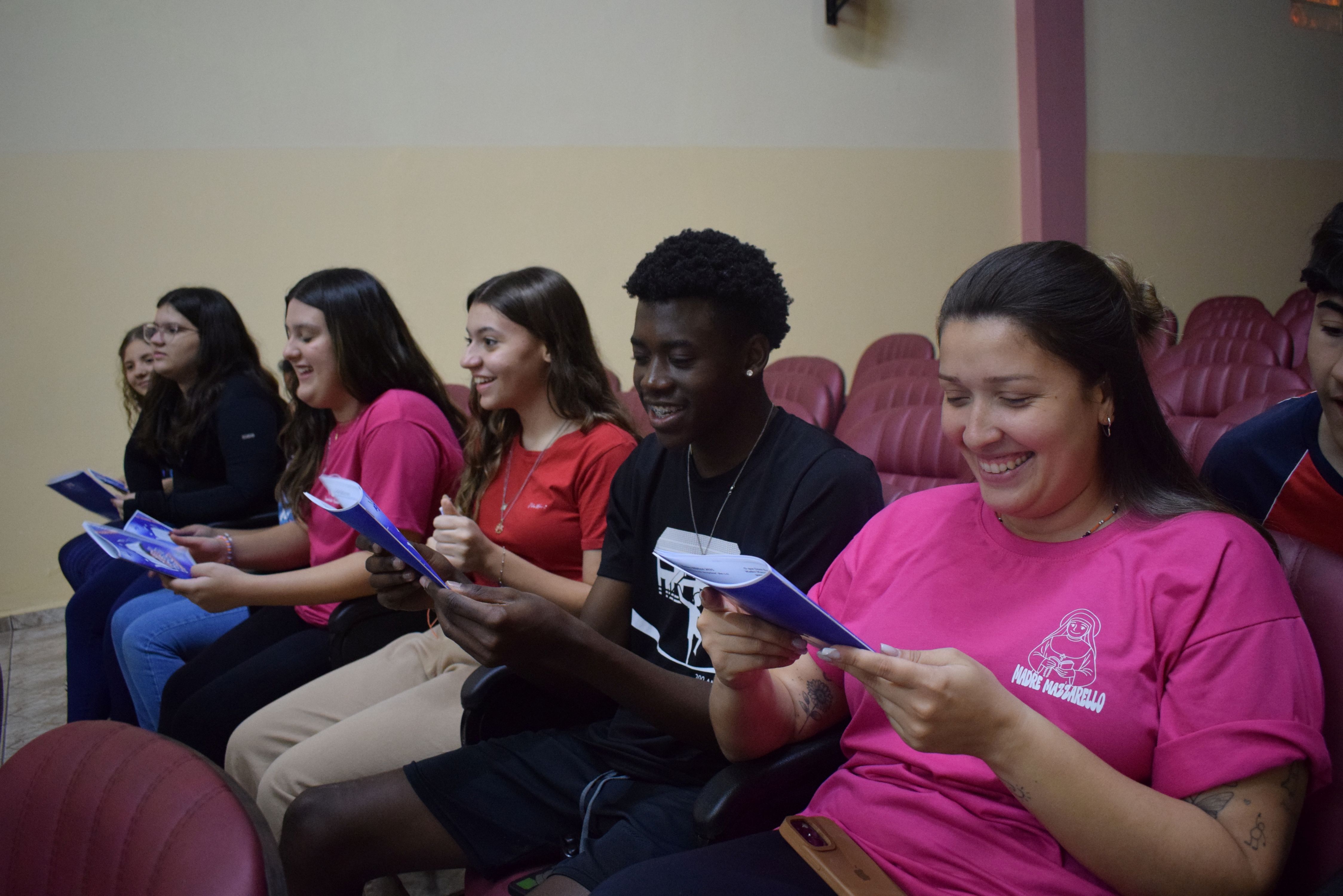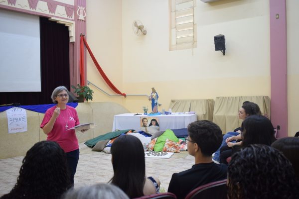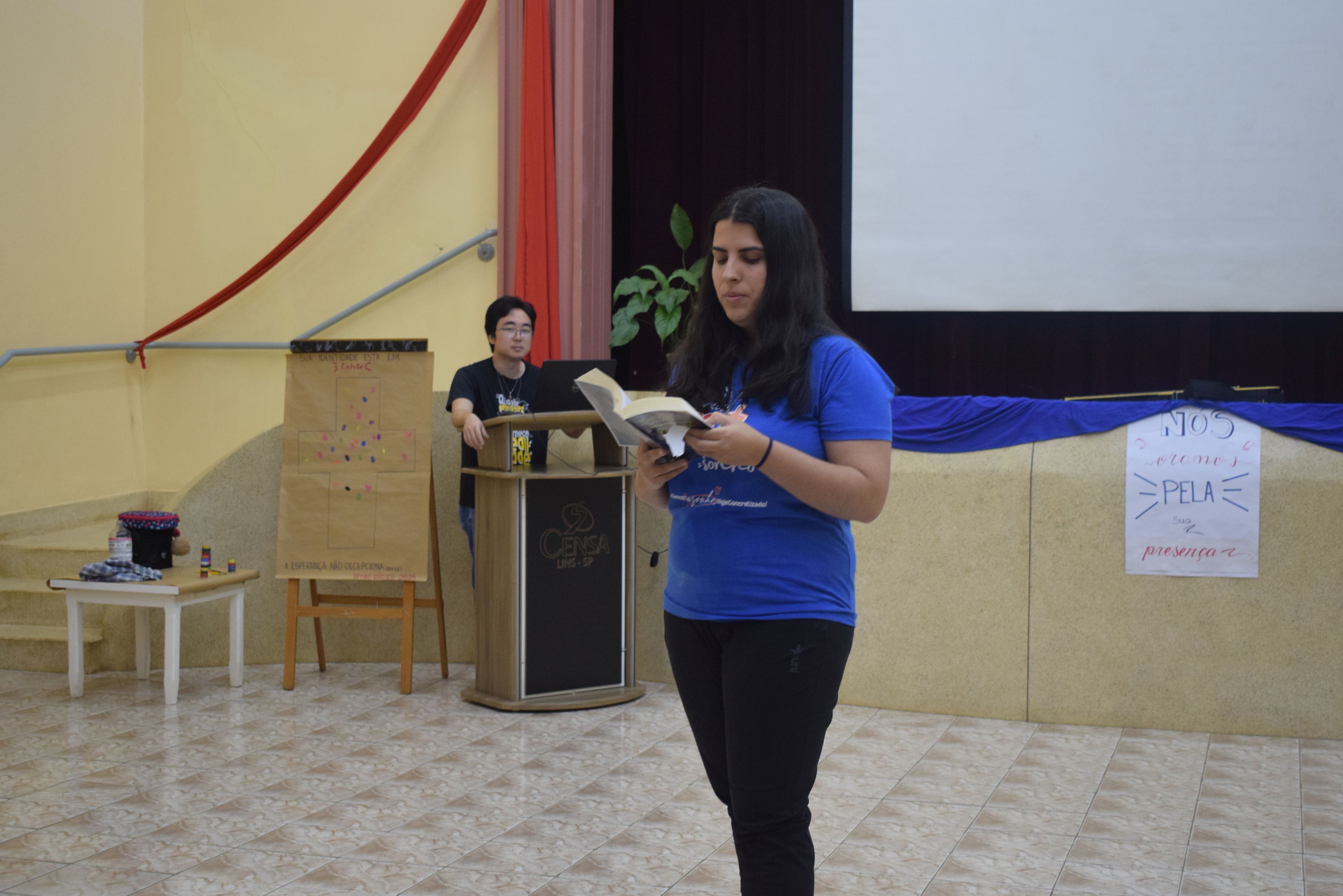 O momento da Lectio Divina, inspirada no texto do Evangelho de Lucas (24, 13-24), foi conduzida pela jovem Mailla, da Pastoral do Colégio Auxiliadora, de Ribeirão, juntamente com os jovens daquela comunidade.