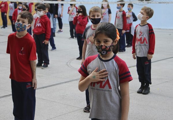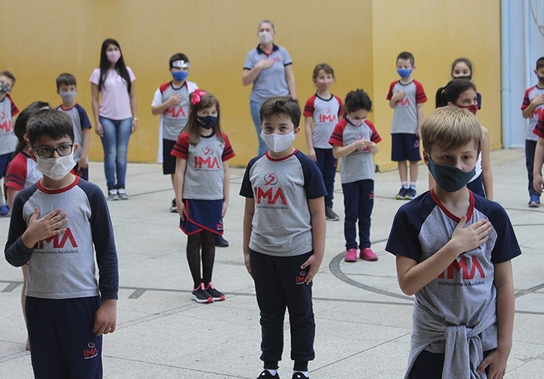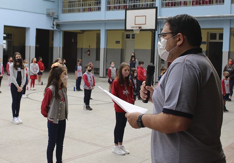 Como ainda estamos vivenciando um ano de pandemia, um cronograma foi organizado para que todas as turmas pudessem participar das solenidades, em dias diferentes, respeitando o distanciamento social.