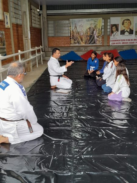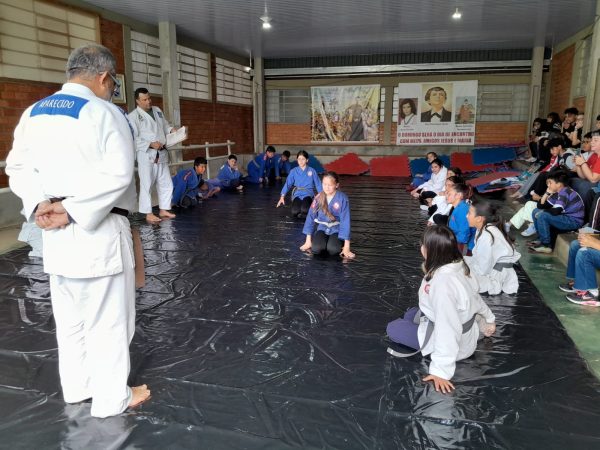 Um dos destaques da fala do “Sensei” Santos foi esclarecer que o Judô não é um caminho suave, podendo ser interpretado como caminho da suavidade e que cada judoca pode desenvolver dentro de si a suavidade. Retomou com as crianças a origem do Judô e falou do criador do Judô, Jigoro Kano.