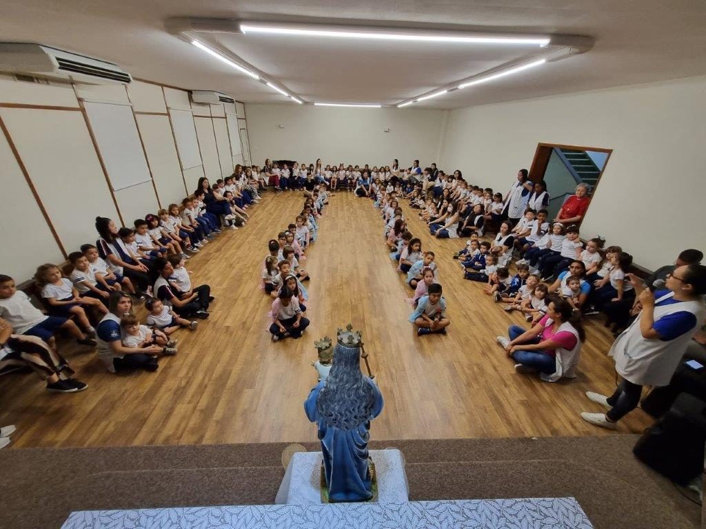 As atividades começaram com a distribuição das capelinhas que percorreram as casas dos estudantes. Cada sala de aula recebeu uma capelinha, que visitou e abençoou as casas dos alunos diariamente. Esse gesto simbólico reforçou a presença de Nossa Senhora no cotidiano das famílias, promovendo um ambiente de oração e união.