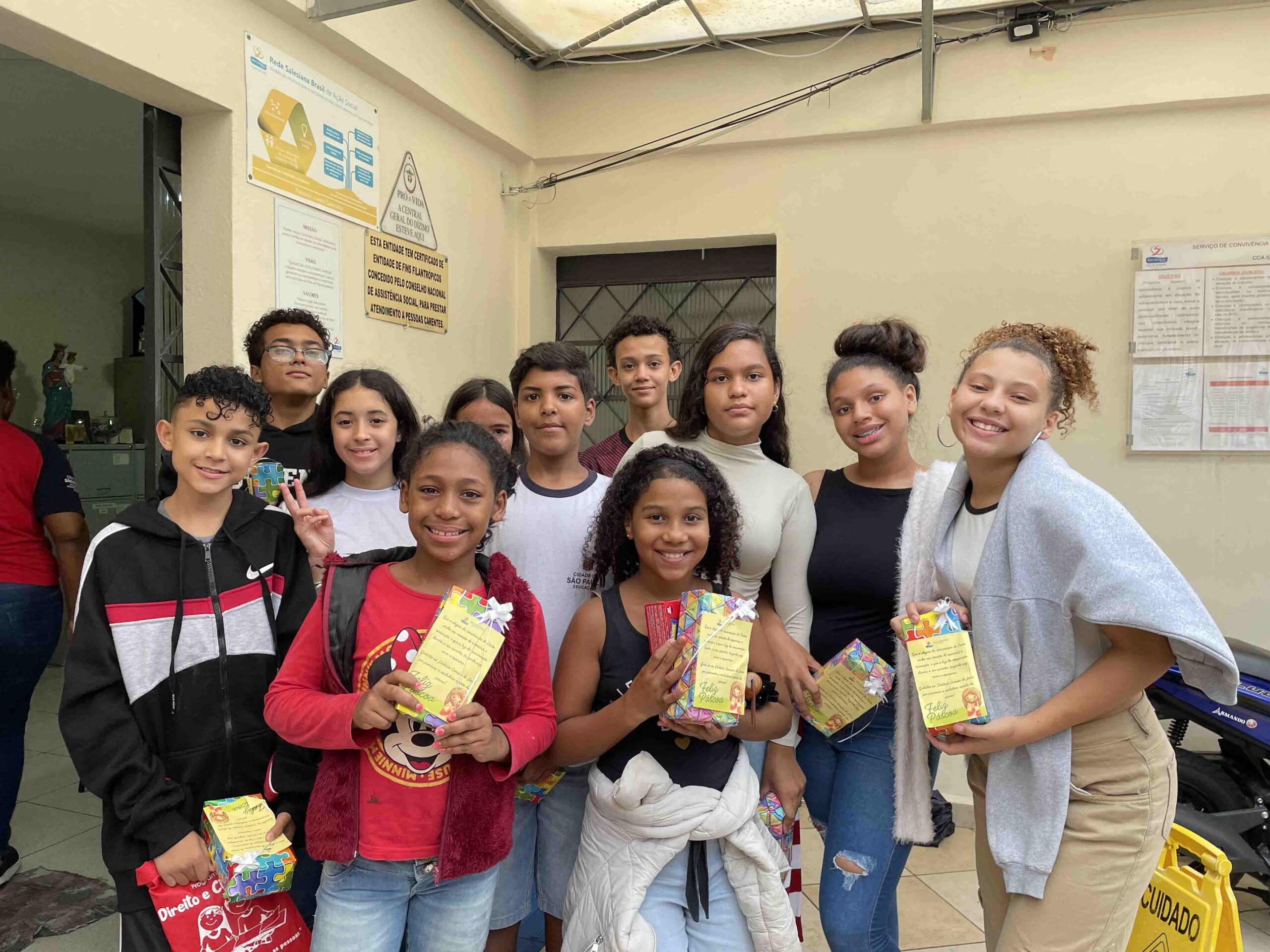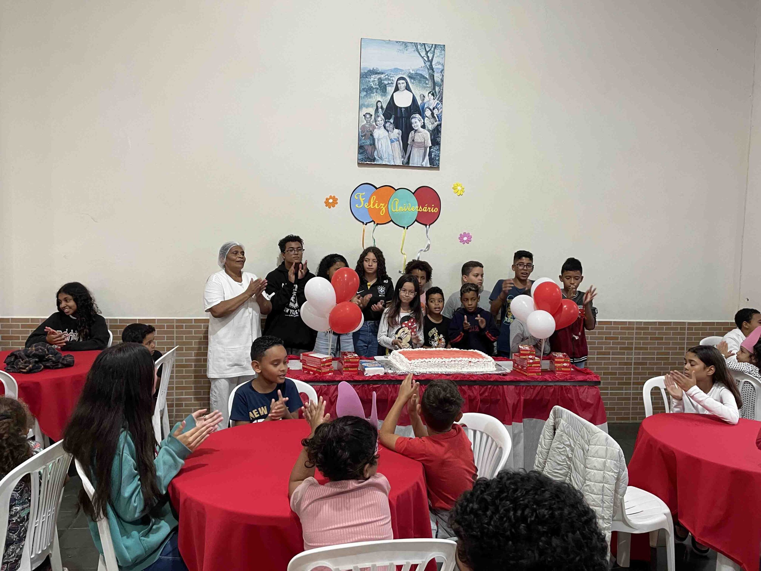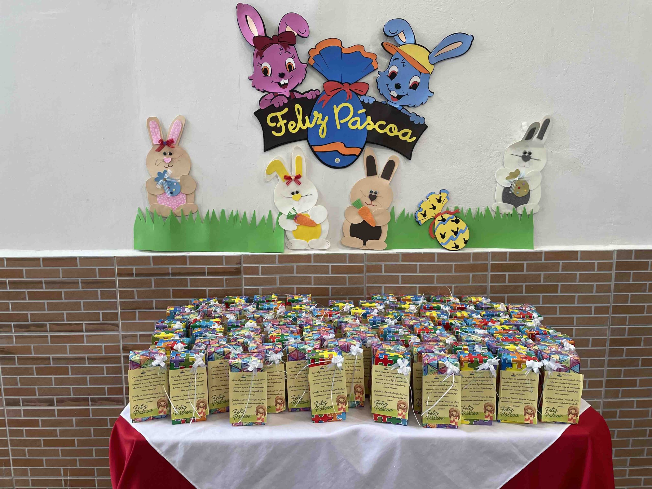 No retorno ao CCA, além das celebrações e encenações, foi reservado um momento para homenagear os aniversariantes do mês, reconhecendo e valorizando cada indivíduo presente. Em seguida, foram distribuídos os presentes de Páscoa às crianças e adolescentes. Estes presentes foram generosamente doados pelos estudantes e familiares do Instituto Coração de Jesus, de Santo André (SP), por meio de uma ação pastoral solidária e significativa. Esse gesto de solidariedade e partilha, essencialmente um dom de Deus, enche de alegria e esperança a vida dos educandos, reforçando os laços comunitários e a missão do CCA Santa Lúcia.
