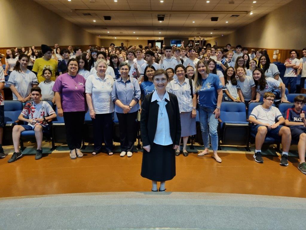 Durante sua visita, Irmã Paola conheceu as instalações da escola, foi calorosamente recebida pelos educadores e participou de uma programação especial com os estudantes, destacando o impacto contínuo da missão salesiana na formação integral dos jovens.