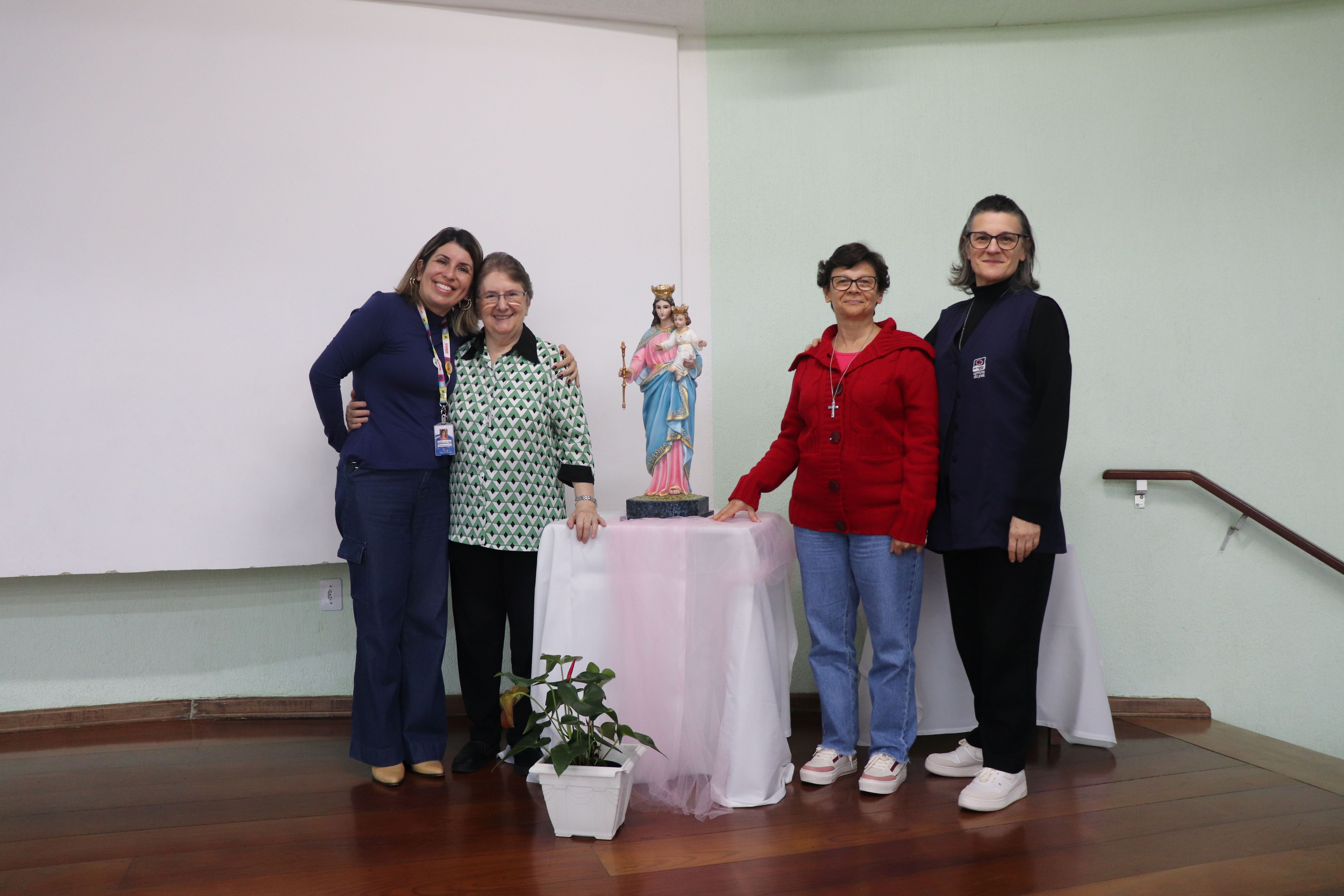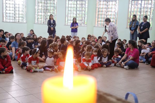 Na segunda-feira, dia 7 de abril, houve uma celebração especial com todos os colaboradores do Instituto São José e também do Instituto Laura Vicuña, situado na mesma cidade, unindo a visita da Irmã Alaíde com a festa da Páscoa. Em sua conversa com a equipe, ela utilizou como inspiração o texto Milhode Pipoca, de Rubem Alves, convidando os participantes a refletirem sobre o que os transforma em “pipoca”, ou seja, o que os faz evoluir e crescer, evitando tornarem-se “piruás” – aqueles que não chegam a se transformar.