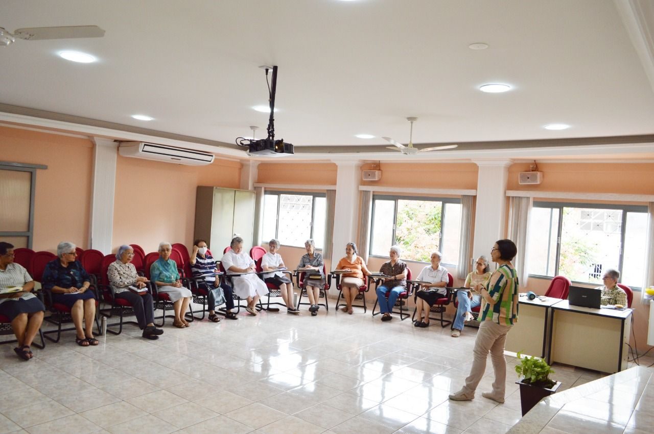 Durante a transmissão, Irmã Solange apresentou o tema do XXIV Capítulo Geral de forma dinâmica e vivencial, através da Leitura Orante do Evangelho de João 2, 1-11.